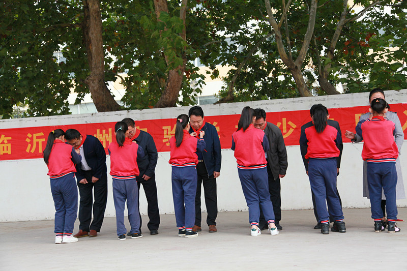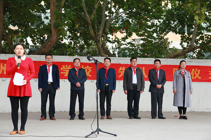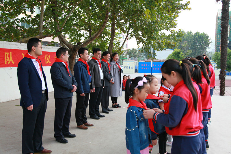 入隊儀式上,王自祥校長為同學們授大隊旗,輔導員李元明老師對新隊員入隊表示熱烈祝賀?;顒舆€聘請了一年級的班主任為一年級各中隊的中隊輔導員,校領(lǐng)導親自給輔導員們頒發(fā)了聘書。