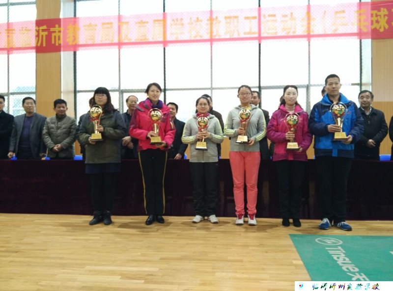 12月4日,由市教育局組織的為期4天的“首屆臨沂市教育局及直屬學(xué)校教工運(yùn)動會(乒乓球、羽毛球比賽)”在實驗中學(xué)北校區(qū)圓滿結(jié)束,本次比賽有11個單位參賽,我校在舉行了選拔賽的基礎(chǔ)上選派出17名優(yōu)秀隊員參加了比賽。最終,在乒乓球比賽中我校成果累累,獲得團(tuán)體比賽第二名的好成績;馬文建、趙家村、魏孝貞三位老師分別獲男子甲組第一名、第三名和第四名;徐勤波書記獲男子乙組第三名,孟軍英老師獲女子甲組第六名。乒乓球比賽獲團(tuán)體一等獎,羽毛球比賽獲團(tuán)體三等獎,學(xué)校獲優(yōu)秀組織獎。