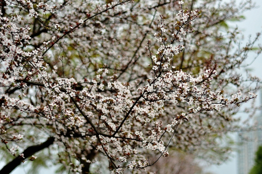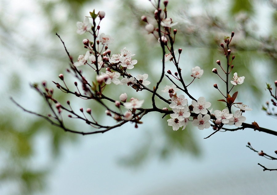 1.第一類花是紫葉李花。紫葉李喜光,喜溫暖濕潤(rùn)氣候,有一定的耐寒力,對(duì)土壤要求不嚴(yán),不耐干旱,較耐水濕,但在肥沃、深厚、排水良好的黏質(zhì)中性、酸性土壤中生長(zhǎng)良好,不耐堿。原產(chǎn)地主要在江蘇沭陽,常州,南昌,四川等長(zhǎng)江地區(qū),其它如北京,大同,山西,重慶等等省市也有大量引種。“三分春色今馀幾,開盡桃花見李花?!焙芏嗳硕紩?huì)誤認(rèn)為它是櫻花,因?yàn)榘装椎膯伟昊ê桶讬鸦H有幾分相似。但紫葉李是薔薇科李屬落葉小喬木,櫻花則是薔薇科櫻屬。雖然花朵不及櫻花那么大,但也頗為清新可愛。風(fēng)吹過的時(shí)候,便會(huì)散落一地的浪漫。紫葉李的花語是:積極、幸福、向上。就和這同時(shí)到來的春天一樣,給人希望。