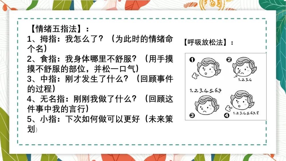 情緒變化是每個(gè)人的正常心理現(xiàn)象。當(dāng)我們遇到不愉快的事情時(shí),潛意識(shí)里會(huì)否認(rèn)這件事,希望它沒(méi)有發(fā)生,這也是正常的。但這不能真正解決問(wèn)題。所以當(dāng)出現(xiàn)負(fù)面情緒時(shí),我們需要進(jìn)行自我覺(jué)察,試著感受當(dāng)下的情緒??梢栽囍鴮?duì)自己說(shuō):“我剛剛有點(diǎn)著急”、“我現(xiàn)在有些焦”等等。在此推薦給大家“情緒五指法”,用五個(gè)步驟調(diào)整自己的情緒。遇到情緒波動(dòng)的時(shí)候,讓自己成為情緒的主人。