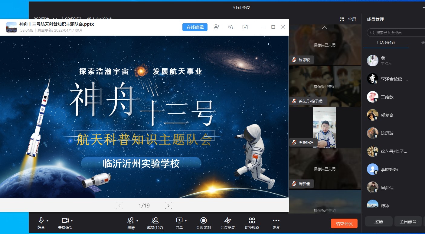 少年勤筑夢,夢圓在少年。此次班會讓沂州學(xué)子感受到祖國強大的航天力量,銳意進取的航天精神也將激勵沂州學(xué)子心懷夢想,用矢志不渝的信念逐夢星空,以奮發(fā)向上的精神面向深藍!