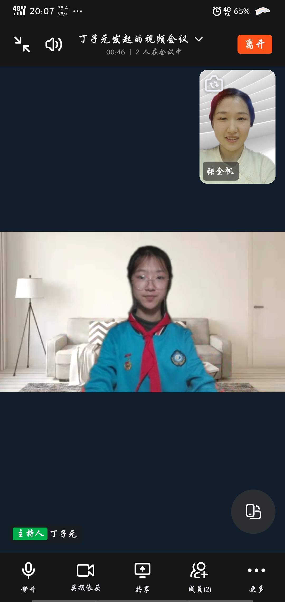 丁子元:“張老師您好!很榮幸今天以這種特殊的方式來向您學(xué)習(xí)!您是一位年輕的老師,但在學(xué)校各項活動中都有您的身影,取得了很多成績,請問我們?nèi)绾蜗衲粯幼兊脙?yōu)秀?”