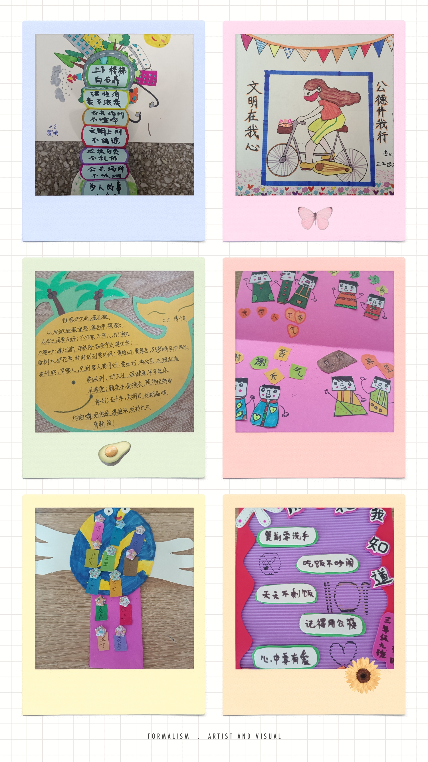 學(xué)生圍繞文明禮儀、 文明用餐、文明旅游、文明出行等主題,與家人共同制作文明卡,家庭之間互贈文明卡,交換文明城市創(chuàng)建知識和心得,并遴選優(yōu)秀作品在校園內(nèi)集中展示。