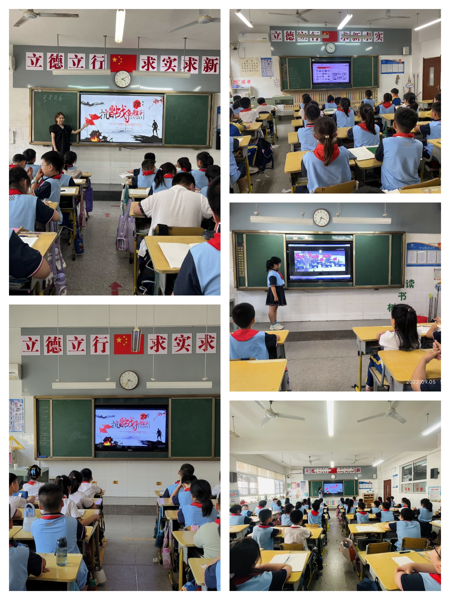 隊會課上,神敏主任組織學(xué)生觀看抗戰(zhàn)視頻,讓學(xué)生了解這14年的抗戰(zhàn)經(jīng)歷,從中感受革命先烈們勇敢頑強(qiáng),誓死報國的革命精神。接著從勿忘國恥,勿忘英雄,勿忘精神,勿忘使命四個方面為同學(xué)們講解了抗日戰(zhàn)爭這段沉重的歷史,教育學(xué)生牢記歷史,不忘過去,珍愛和平,開創(chuàng)未來。