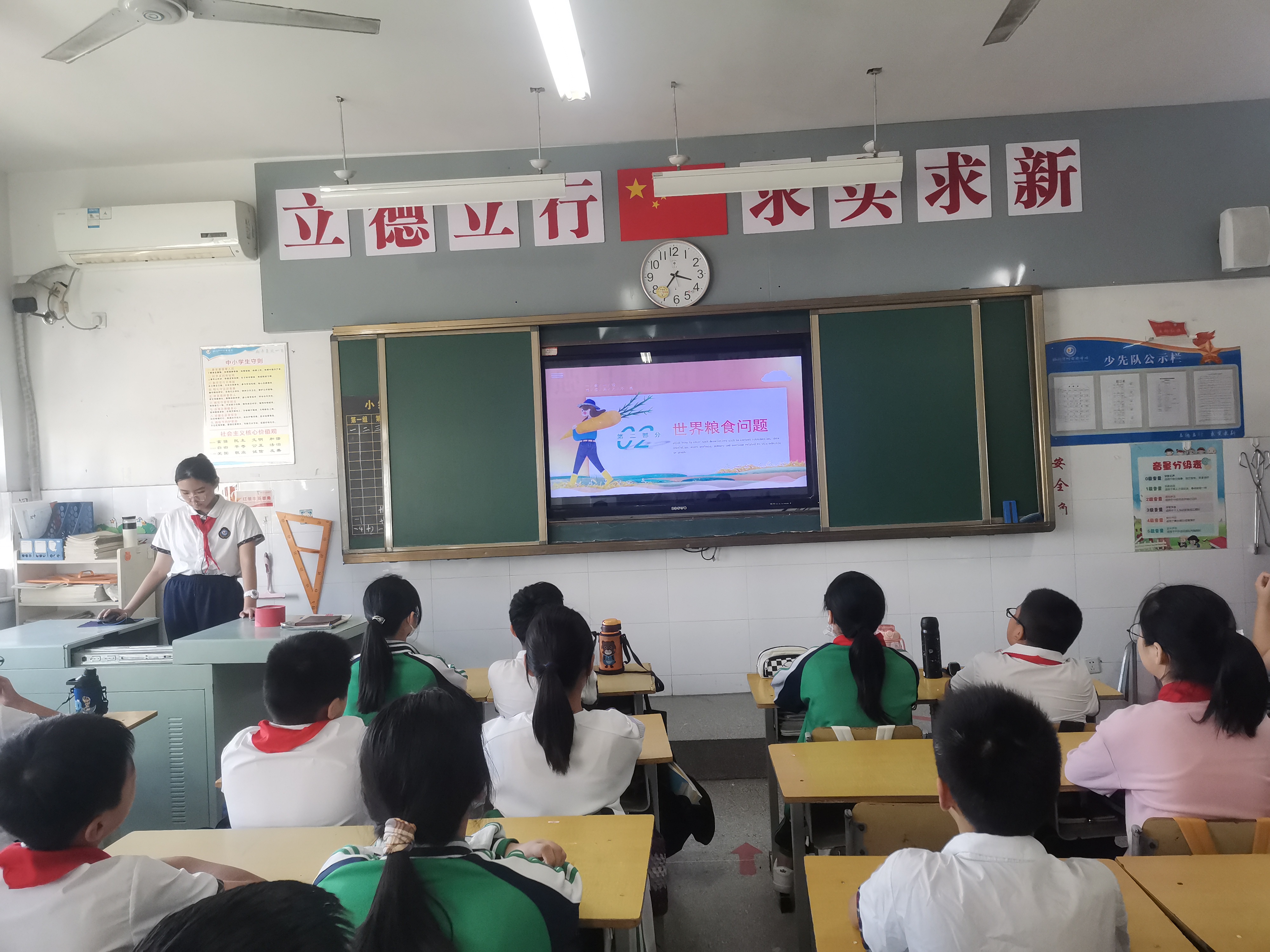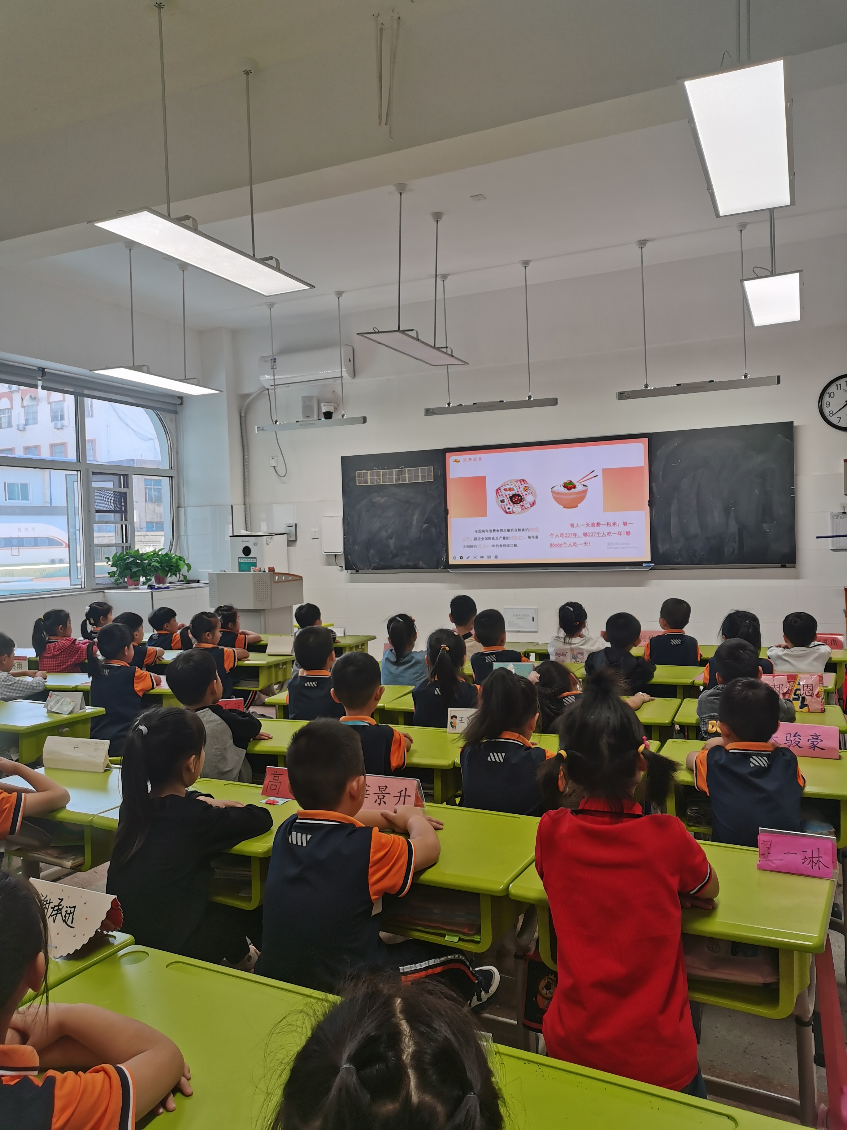 此次班會由各年級分別召開,圍繞“我國糧食現(xiàn)狀”、“世界糧食問題”、“如何節(jié)約糧食”三個主題對學(xué)生進行教育。