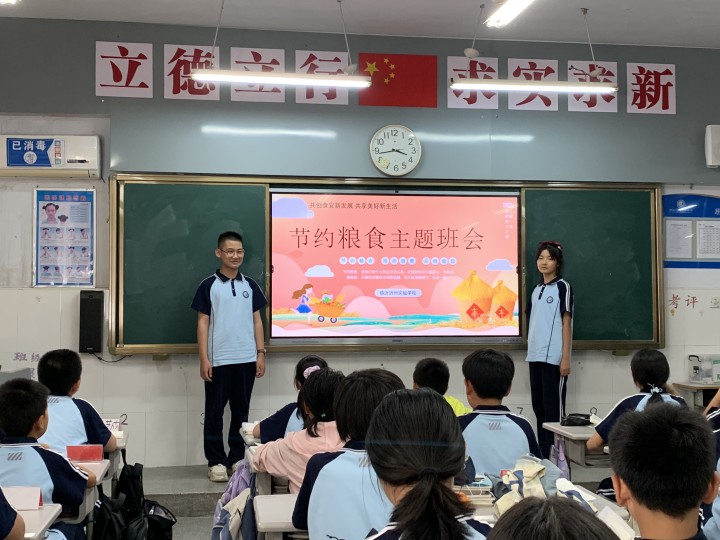 糧食問題關(guān)系國計民生,是一個國家發(fā)展的根本保障。隨著新中國的成立,我國糧食產(chǎn)量不斷增加,人民物質(zhì)生活已經(jīng)完成了從“吃得飽”向“吃得好”轉(zhuǎn)變。為保護得來不易的發(fā)展成果,幫助學(xué)生樹立“節(jié)約糧食,拒絕浪費”意識,19日,我校召開“節(jié)約糧食,拒絕浪費,從我做起”主題班會。