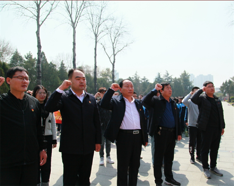 置身紅色土地,重溫革命歷史。為充分表達(dá)對革命先烈的敬佩與哀思,全體師生在紀(jì)念碑前給革命英烈敬獻(xiàn)花藍(lán)。優(yōu)秀少先隊(duì)員作代表發(fā)言并表示要努力繼承先輩精神,努力學(xué)習(xí)繼續(xù)奮進(jìn)。接著,七年級學(xué)生在烈士紀(jì)念碑前莊嚴(yán)宣誓,錚錚誓言,吾輩自強(qiáng)。全體黨員教師重溫入黨誓詞,不忘初心。