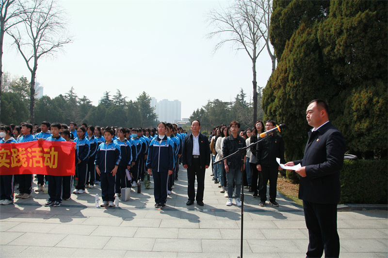 為緬懷革命英雄先烈、賡續(xù)共產(chǎn)黨人精神血脈,引導(dǎo)隊(duì)員們“扣好人生第一??圩印?,在清明節(jié)即將到來之際,3月28日上午,臨沂沂州實(shí)驗(yàn)學(xué)校七年級師生徒步赴華東革命烈士陵園,開展“祭奠革命先烈 傳承革命精神”暨清明祭英烈教育實(shí)踐活動。學(xué)校黨委委員、副校長張福生帶隊(duì),中學(xué)政教處汪慧君主任、韓克副主任,七年級一級部魏曉軍主任、七年級二級部劉紀(jì)海主任及七年級全體老師隨行。