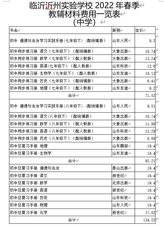 根據(jù)上級(jí)有關(guān)文件規(guī)定,義務(wù)教育階段學(xué)生教輔材料收費(fèi)屬于代收費(fèi),據(jù)實(shí)結(jié)算,現(xiàn)將我校2022年春季學(xué)生教輔收費(fèi)情況進(jìn)行公示。收費(fèi)時(shí),將通過(guò)臨沂市教育局收費(fèi)平臺(tái)進(jìn)行,沒(méi)有其他收費(fèi)途徑。請(qǐng)予監(jiān)督。