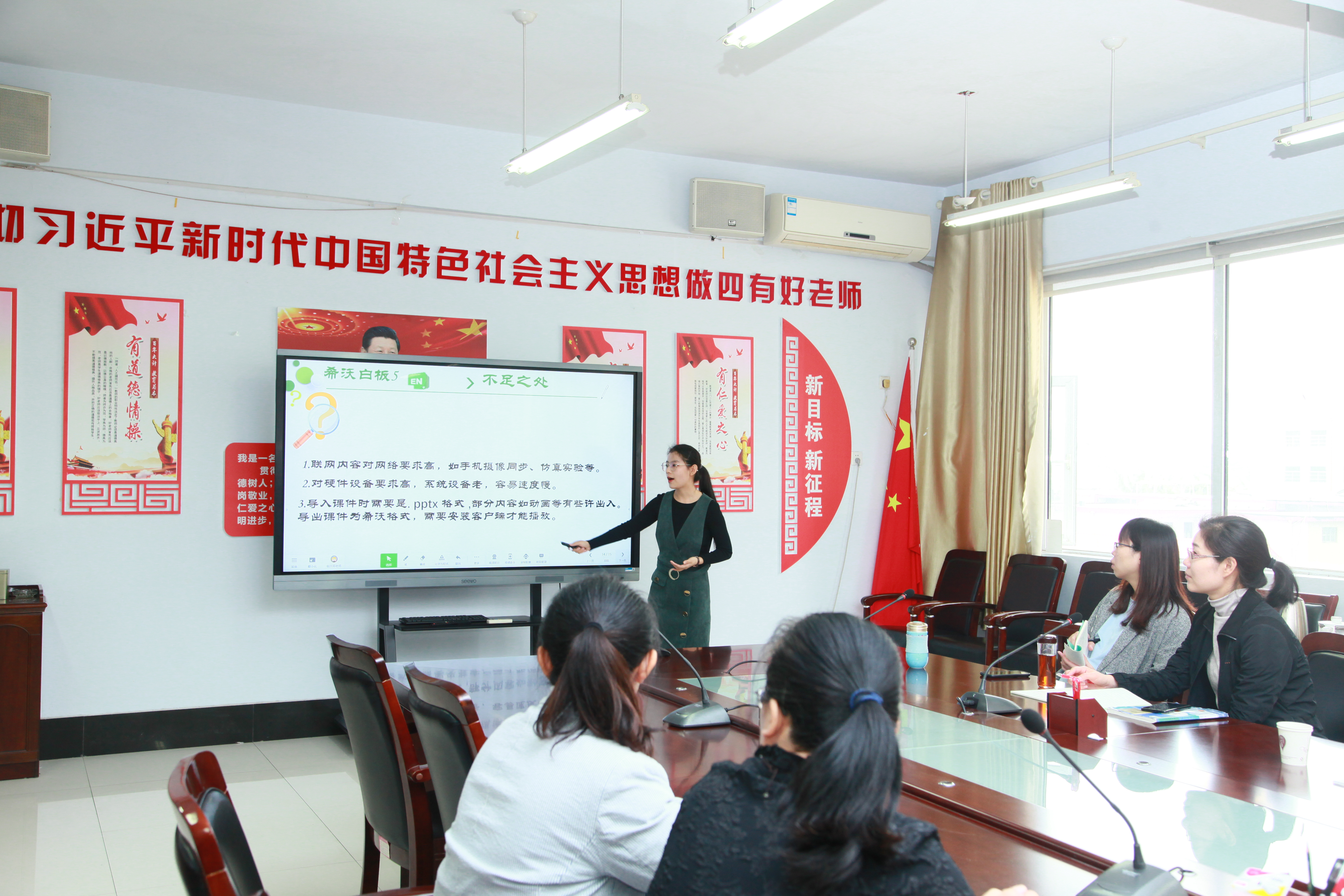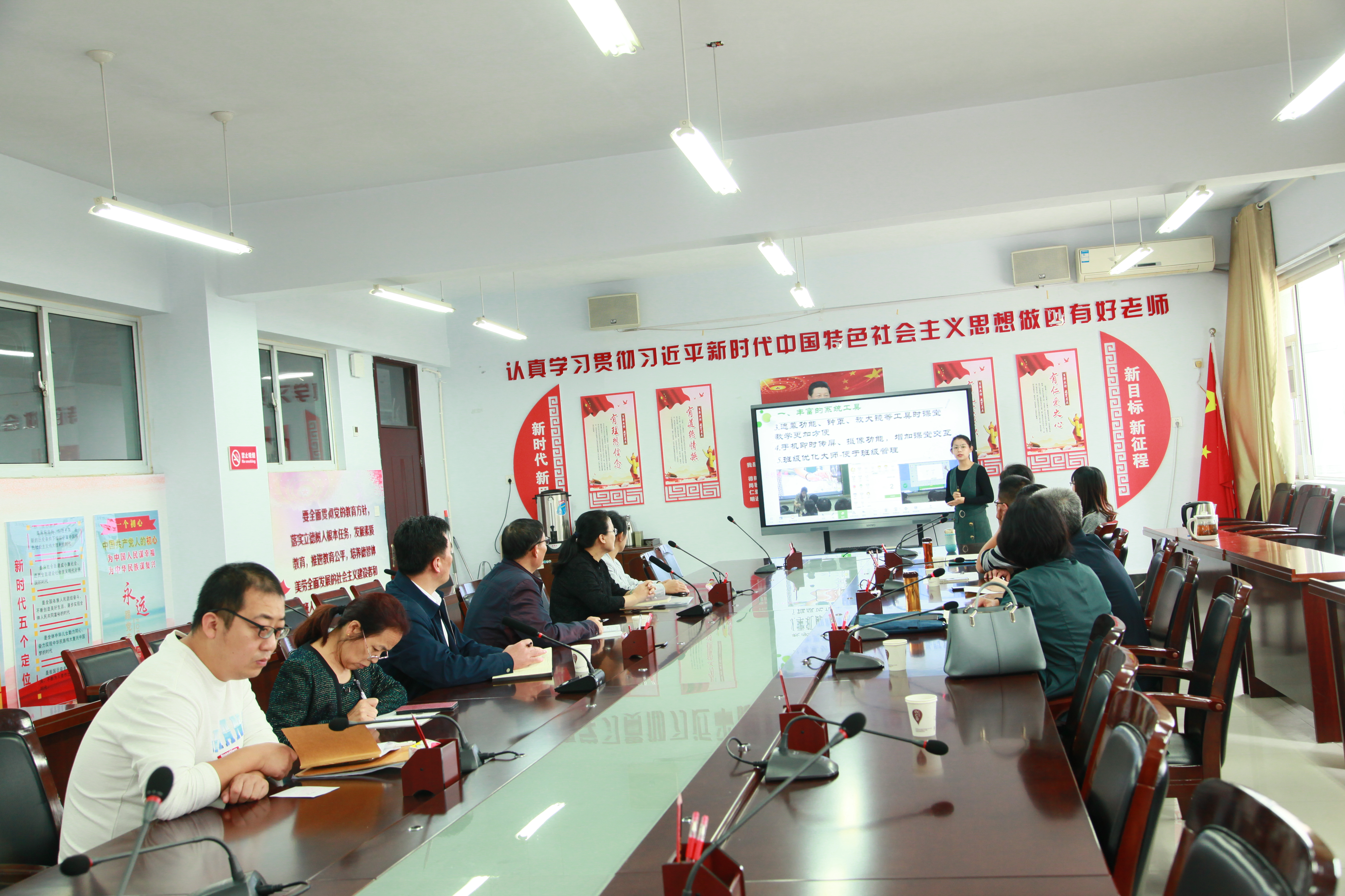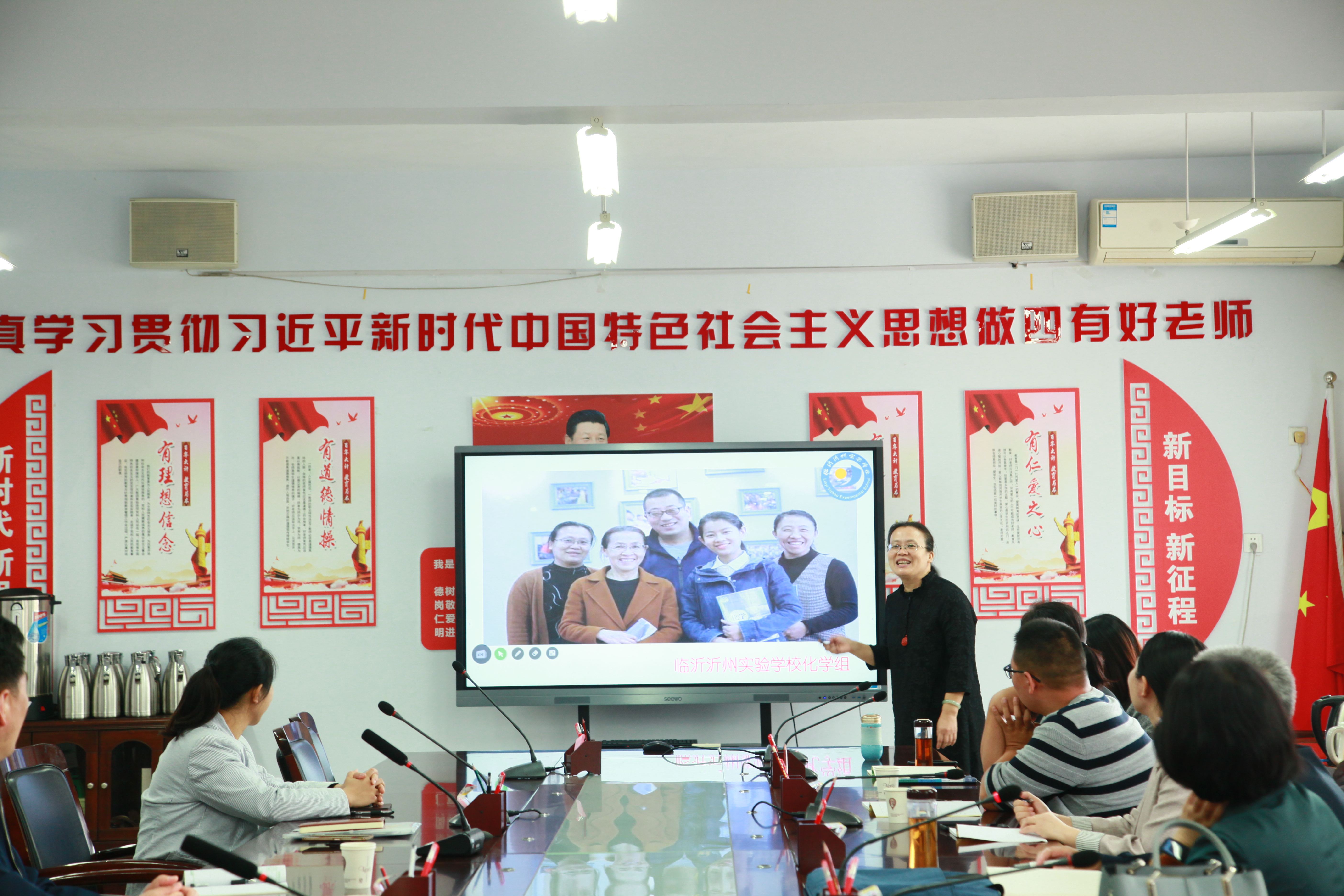 在本次會(huì)議中,陳主任首先明確了本次會(huì)議的主題:為即將在我校舉行的臨沂市市直初中化學(xué)聯(lián)研活動(dòng)做積極籌備。我校老師積極參與,認(rèn)真準(zhǔn)備,鄭桂華老師匯報(bào)了《希沃白板在初中化學(xué)教學(xué)中的應(yīng)用》,令與會(huì)老師耳目一新,感嘆多媒體技術(shù)給我們的教學(xué)帶來的巨大變化!邵海紅老師代表臨沂沂州實(shí)驗(yàn)化學(xué)組做了《專家引領(lǐng),團(tuán)結(jié)合作,共同成長》的教研組工作匯報(bào)。