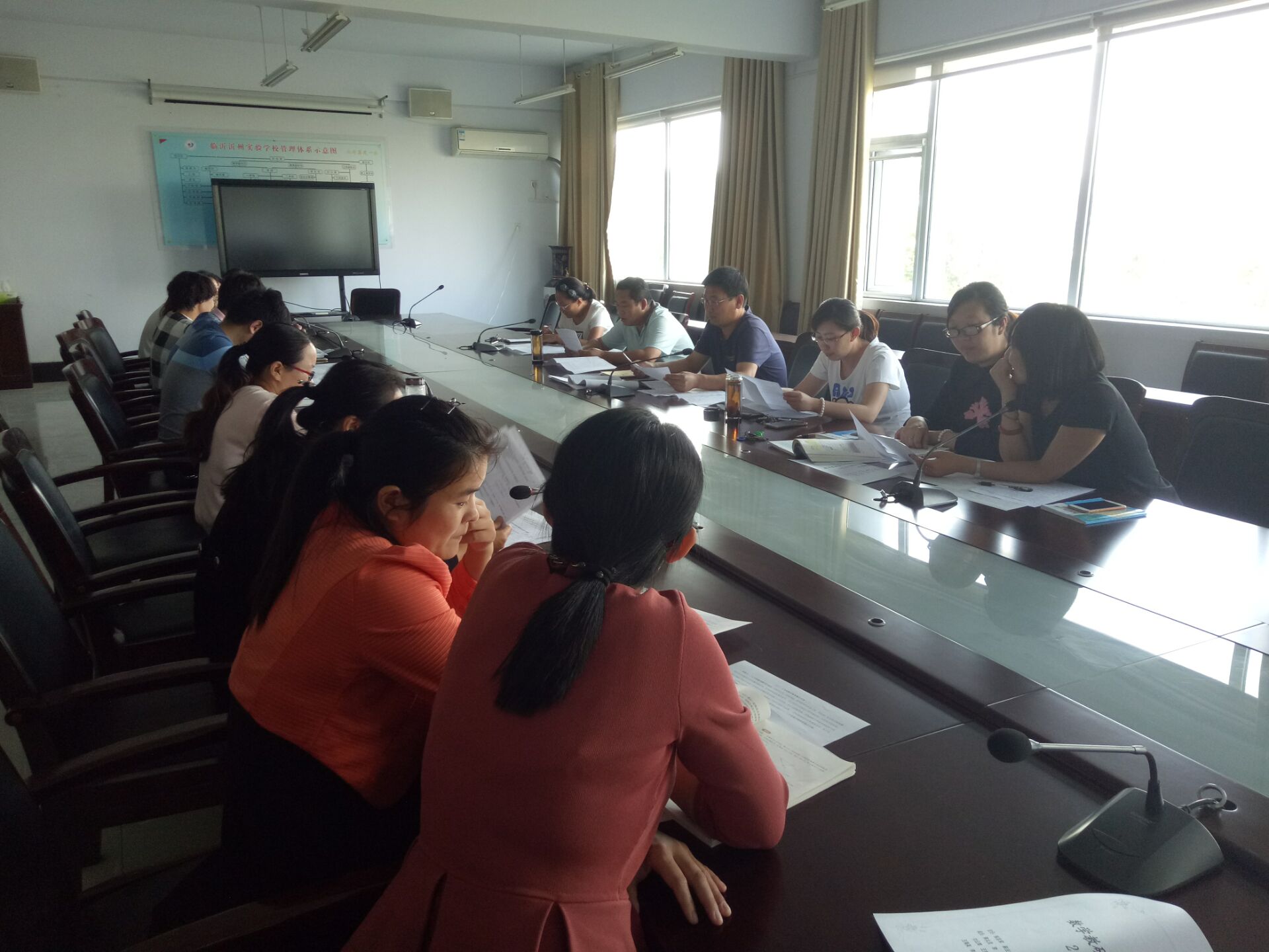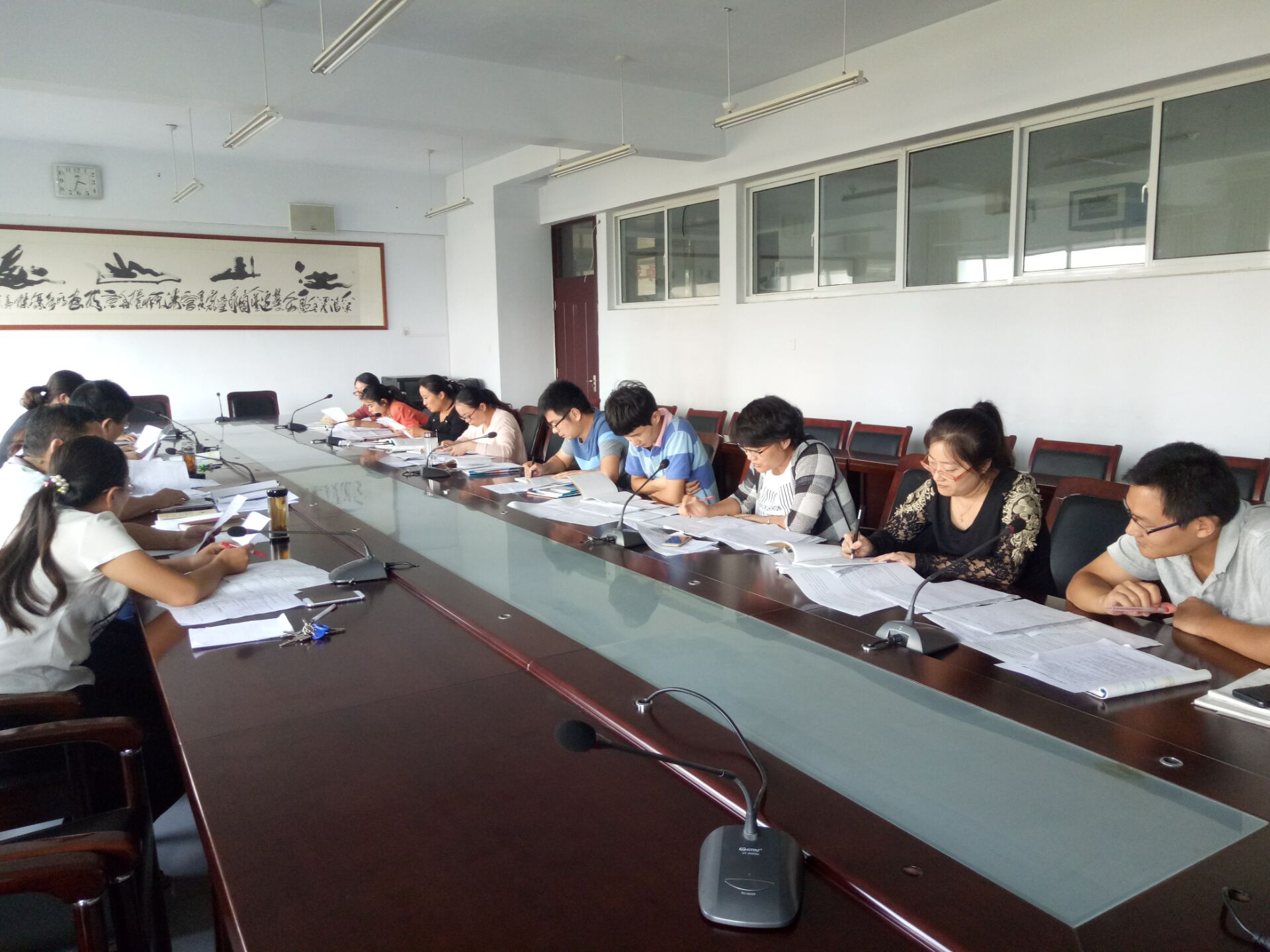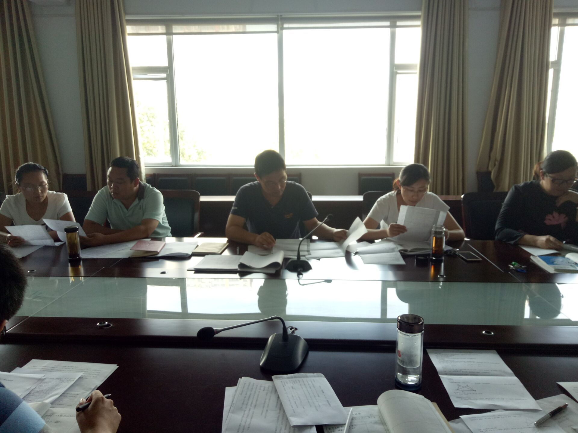 2016年9月21日下午,我校中學(xué)數(shù)學(xué)教研組在三樓會議室舉行了教研活動。首先由參加市直初中數(shù)學(xué)德育優(yōu)秀課例的三位老師分別就自己參評課題的教學(xué)設(shè)計進行了匯報,把設(shè)計思路、導(dǎo)入方式、習(xí)題配置、教學(xué)流程,尤其是存在的困惑向老師們做了詳細(xì)說明。對他們存在的困惑和自己的想法,全組老師分別提出了有針對性的改進建議,對提高參賽老師的授課水平提供了很大幫助。