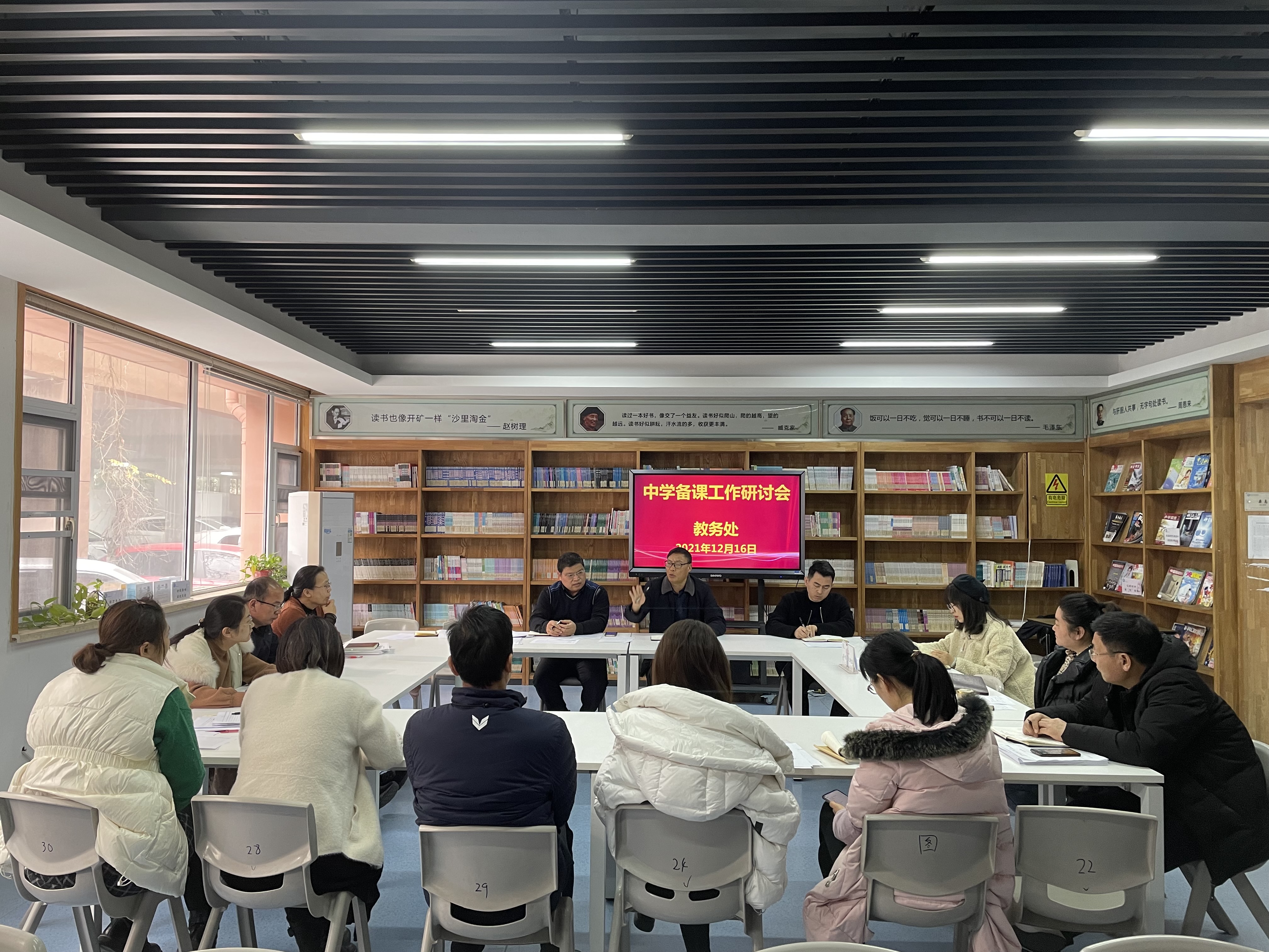 為促進(jìn)我校教學(xué)工作向規(guī)范化、專業(yè)化發(fā)展,提升老師的教學(xué)水平,增強(qiáng)老師的業(yè)務(wù)能力,2021年12月16日,我校中學(xué)教務(wù)處組織六至九年級的教研室負(fù)責(zé)人在一樓圖書館進(jìn)行研討,黨委委員、副校長李守峰同志參加了此次會議。