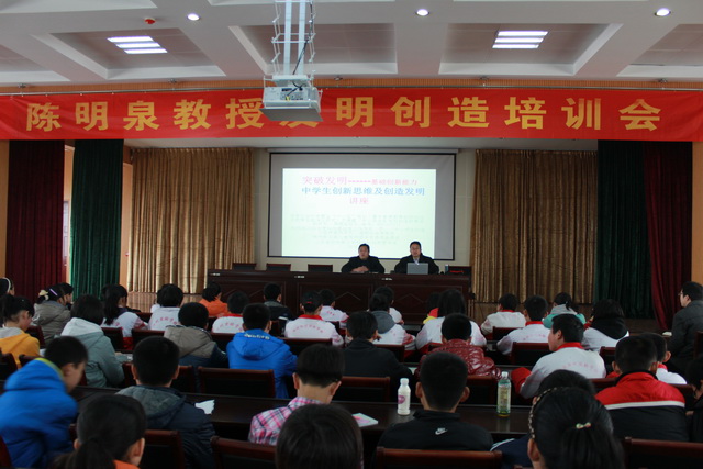 為深入推進(jìn)素質(zhì)教育,培養(yǎng)學(xué)生的觀察能力和創(chuàng)新能力,激發(fā)學(xué)生積極參與科技創(chuàng)新與發(fā)明的熱情,3月17日至18日,我校邀請(qǐng)了發(fā)明創(chuàng)造專家陳明泉教授為七年級(jí)學(xué)生做了一場(chǎng)科技創(chuàng)新發(fā)明專題報(bào)告會(huì)。學(xué)校理化生教師及科技輔導(dǎo)教師也參加了本次報(bào)告會(huì)。