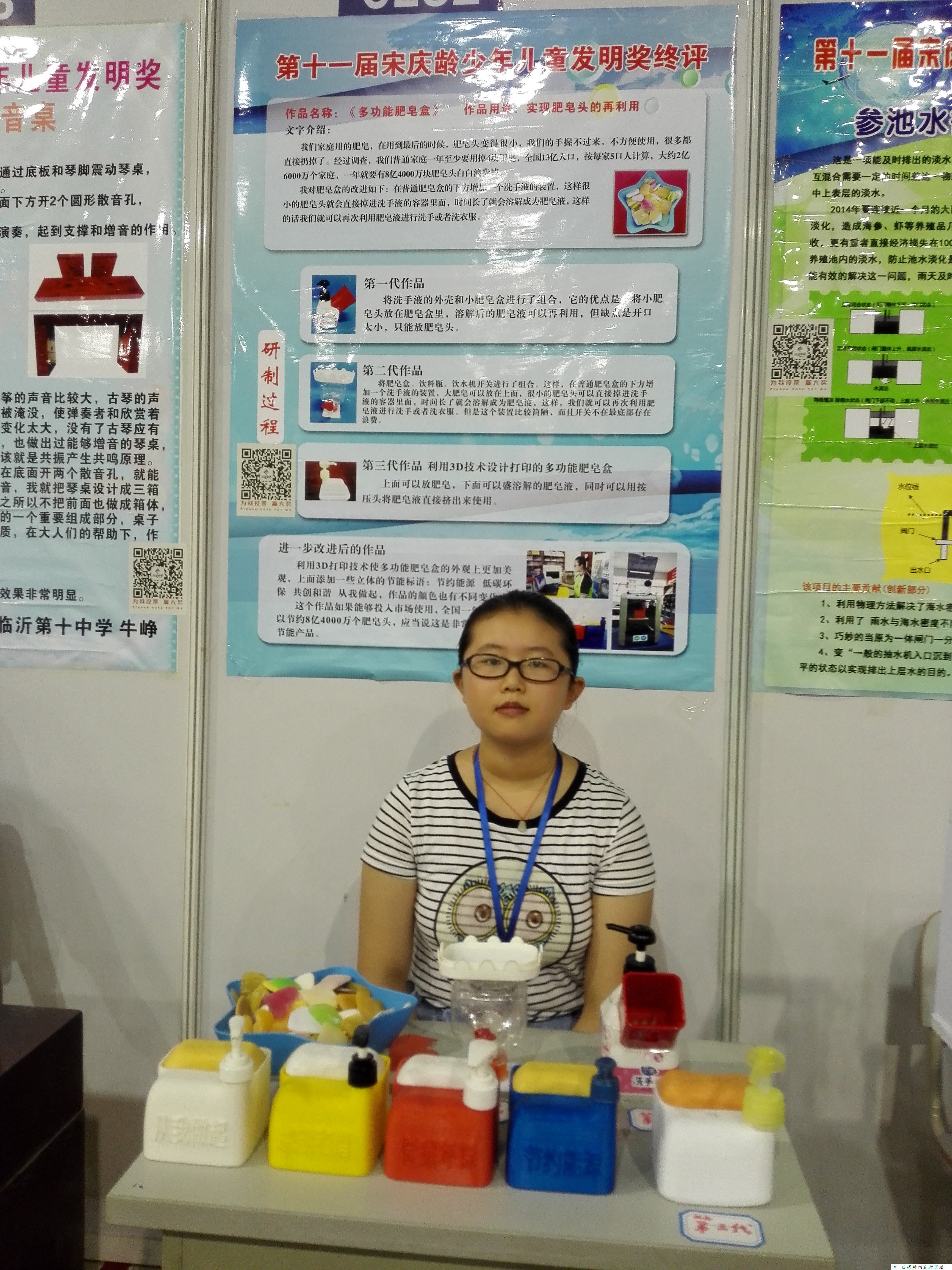 在日前落下帷幕的第十一屆全國“宋慶齡少年兒童發(fā)明獎”總決賽中,臨沂沂州實驗學(xué)校學(xué)生王驍驍?shù)淖髌?ldquo;多功能肥皂盒”參賽并獲得銅獎。