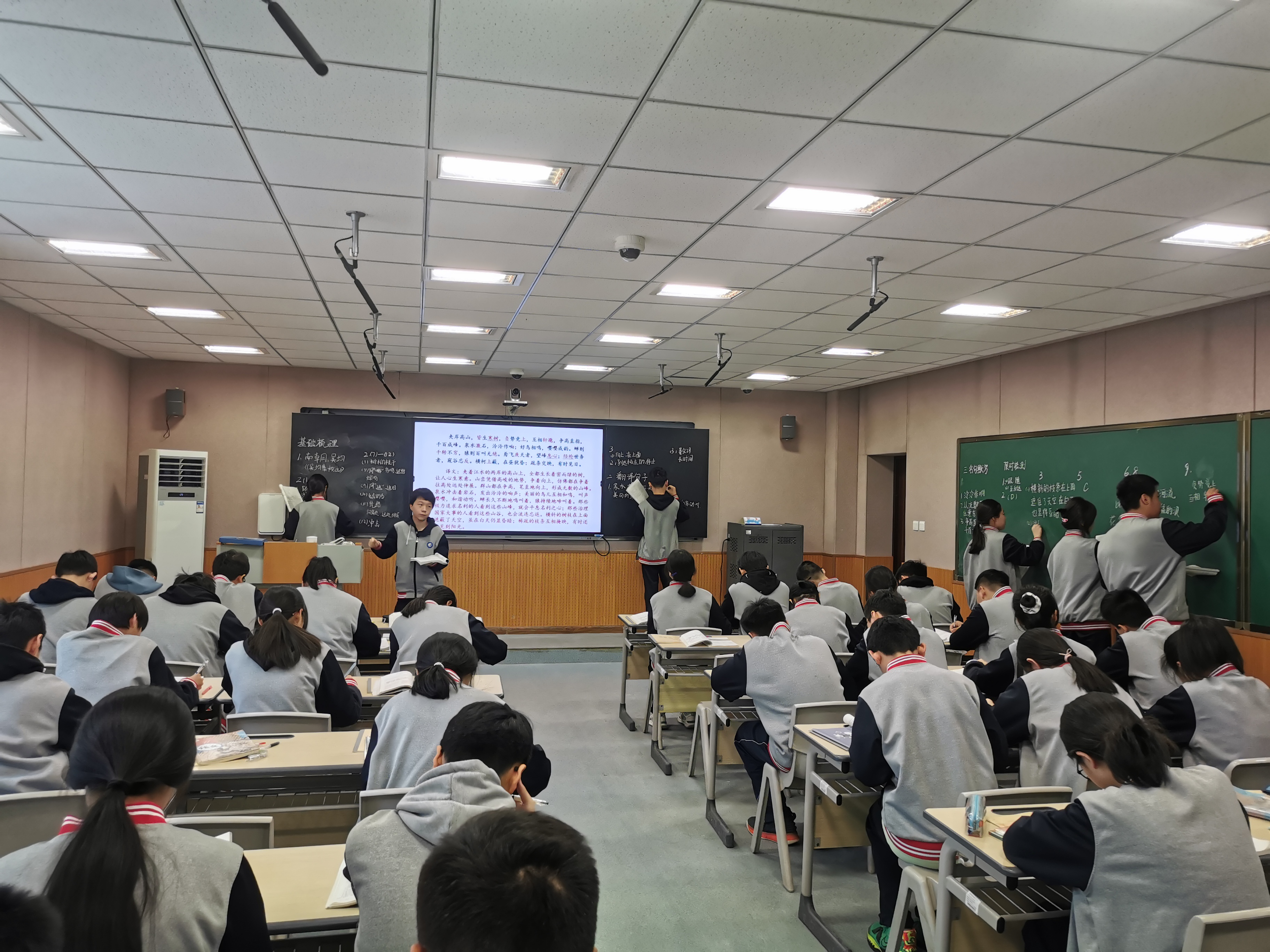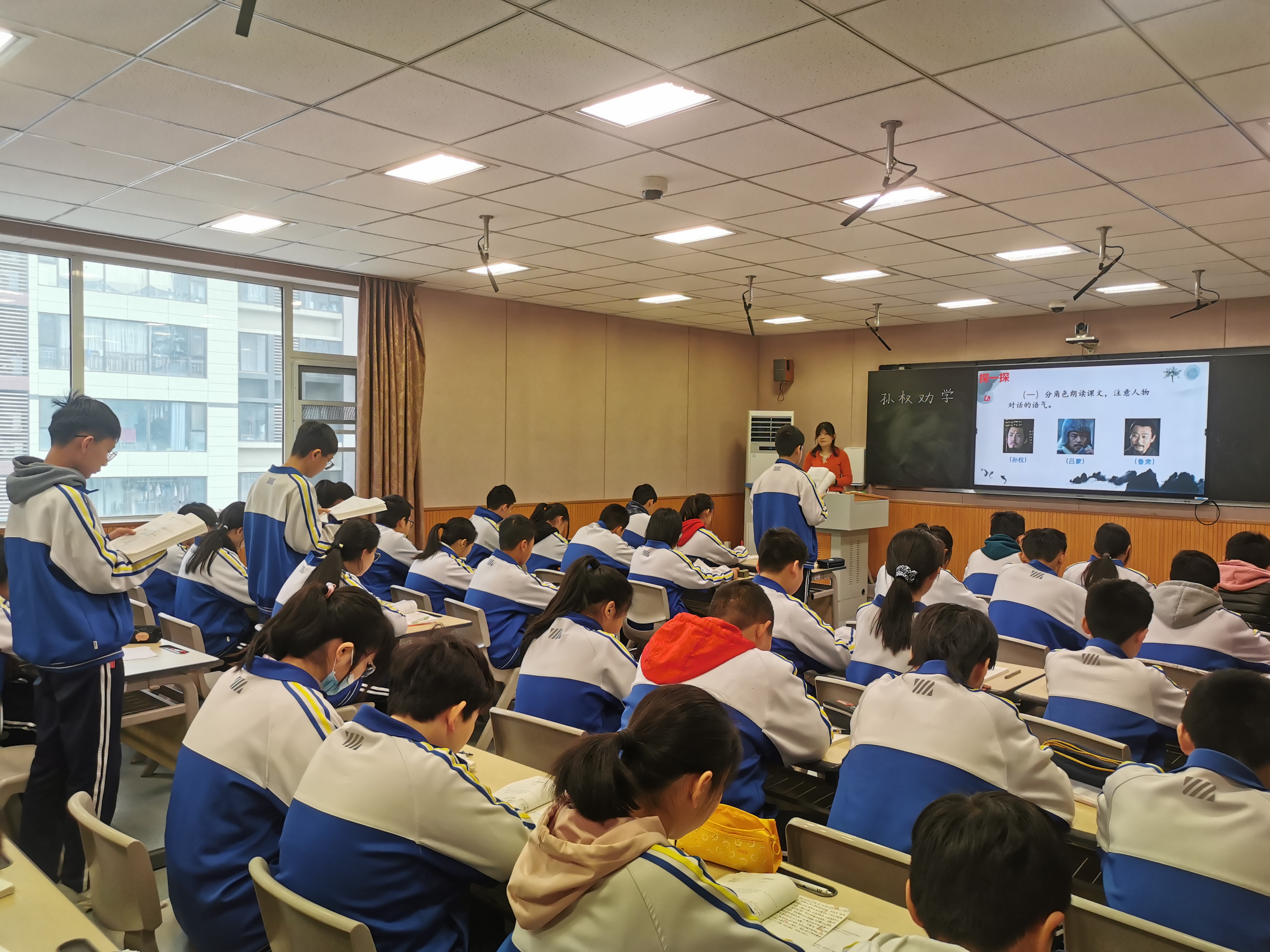 活動共分兩個部分。首先是坐診課堂,把脈問診。教研員龐云龍老師共聽了七年級和九年級的兩節(jié)課。兩節(jié)課都是文言文,既有起始年級的新授課,又有面對中考的復(fù)習(xí)課。七年級喬文老師執(zhí)教的是《孫權(quán)勸學(xué)》,教態(tài)親切自然,教學(xué)環(huán)節(jié)清晰緊湊,層層深入,充分利用小組合作、多方式朗讀、激勵評價等多種方式調(diào)動學(xué)生的積極性,注重基礎(chǔ)和學(xué)習(xí)方法的培養(yǎng),收到良好的效果。九年級厲靜老師執(zhí)教的是《與朱元思書》的復(fù)習(xí)課,整節(jié)課著眼中考,注重基礎(chǔ),反復(fù)鞏固重要知識點,聽寫默寫、當(dāng)堂檢測等環(huán)節(jié)使文言文復(fù)習(xí)落到實處,扎實有效。