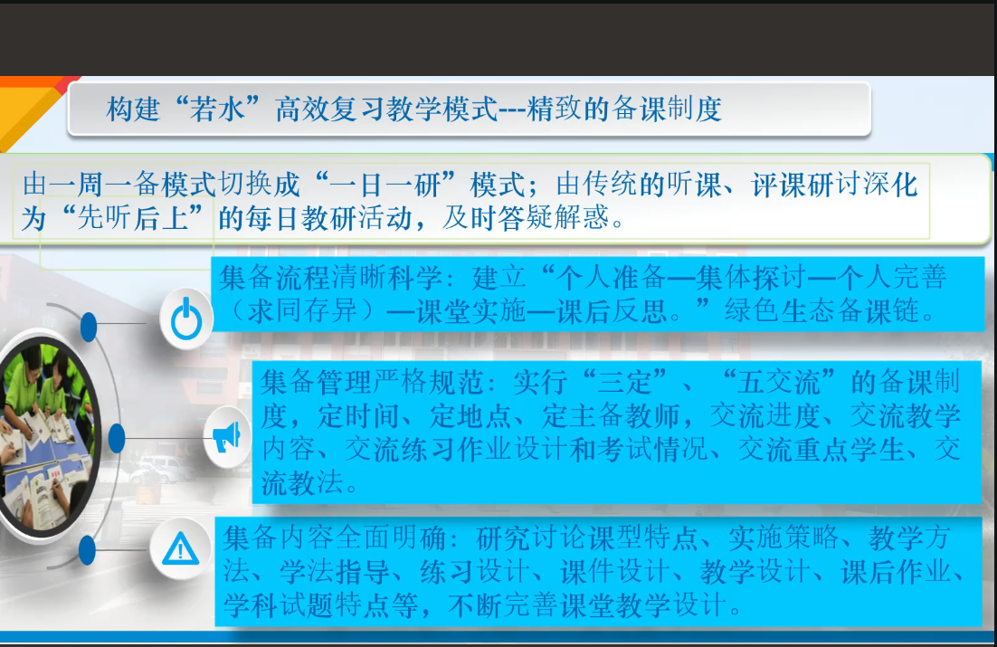 首先,大家共同聆聽了三位老師的說(shuō)課。其中我校優(yōu)秀教師代表陳奕明老師就作文講評(píng)修改課課型做了專題說(shuō)課。三位老師分別從名著閱讀,語(yǔ)言綜合運(yùn)用以及作文升格三個(gè)方面分享了他們的教學(xué)設(shè)計(jì),從不同角度處置了教材和教學(xué)資源,貼近中考,為我們的中考備考提供了豐富的經(jīng)驗(yàn),讓我們受益匪淺。接著,我們還聆聽了五位老師的典型發(fā)言從不同的角度指導(dǎo)我們的中考語(yǔ)文備考。如果說(shuō)聽好課是一種享受,那么聽優(yōu)秀老師的典型發(fā)言更是一種享受。三位老師的說(shuō)課和五位老師的發(fā)言都帶給了我們無(wú)限的精彩和進(jìn)步的力量!