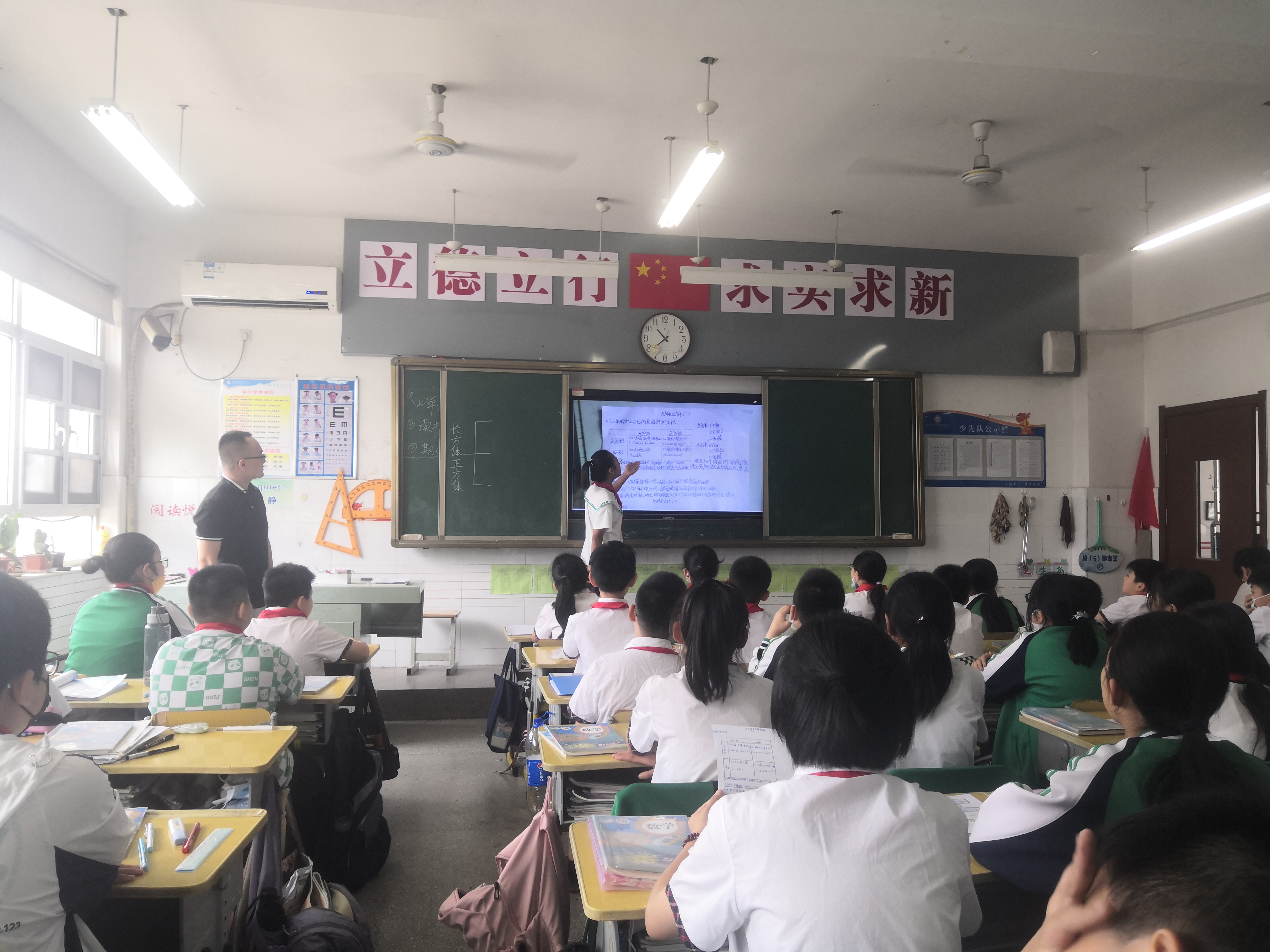彭永強老師帶來了一堂生動的《長方體和正方體復習》數(shù)學課。他通過讓學生自主整理本單元所學知識,教師適時點撥,實踐運用,三個教學環(huán)節(jié)充分調動了學生學習的積極性和主動性,提升了學生對知識的整體應用。