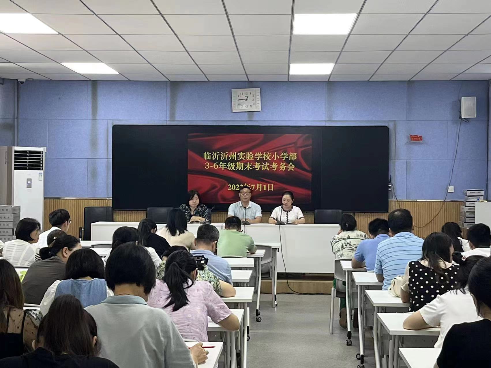 為保證期末考試相關(guān)工作有序順利進(jìn)行,7月1日中午,我校小學(xué)部教務(wù)處在3號(hào)樓學(xué)術(shù)報(bào)告廳召開3—6年級(jí)期末考試考務(wù)工作會(huì)。會(huì)議由教務(wù)處主任蘇媚娟主持會(huì)議,李守峰副校長(zhǎng)、張作萍主任、張艷群副主任、王燕嬌副主任及全體老師參會(huì)。