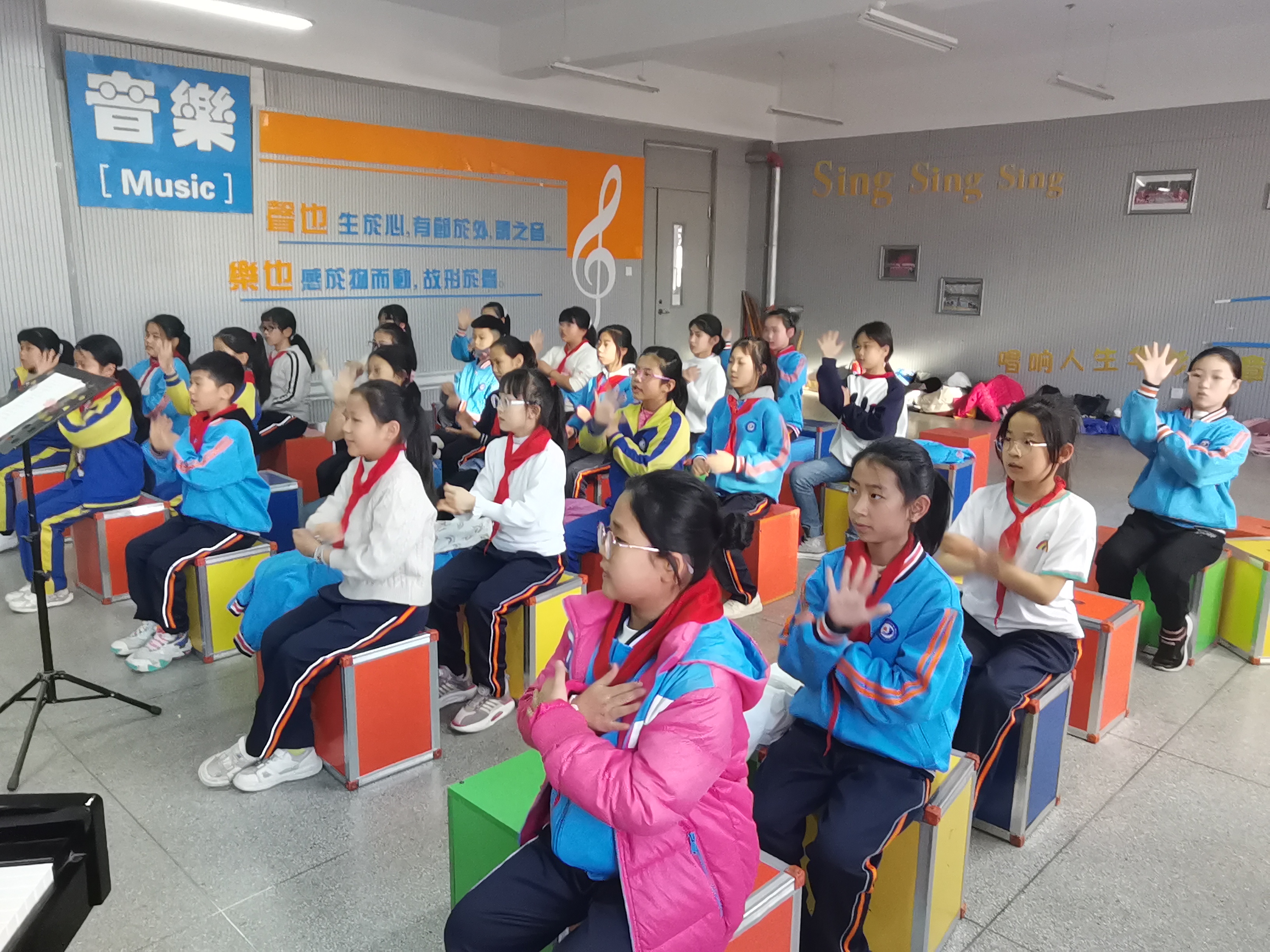 音樂教育是心靈的教育,對于陶冶情操、溫潤心靈、啟迪思想具有不可替代的作用。音樂老師開設合唱、手舞生花,培養(yǎng)同學們"唱、聽、動”等能力的同時,引導他們享受音樂的美妙。