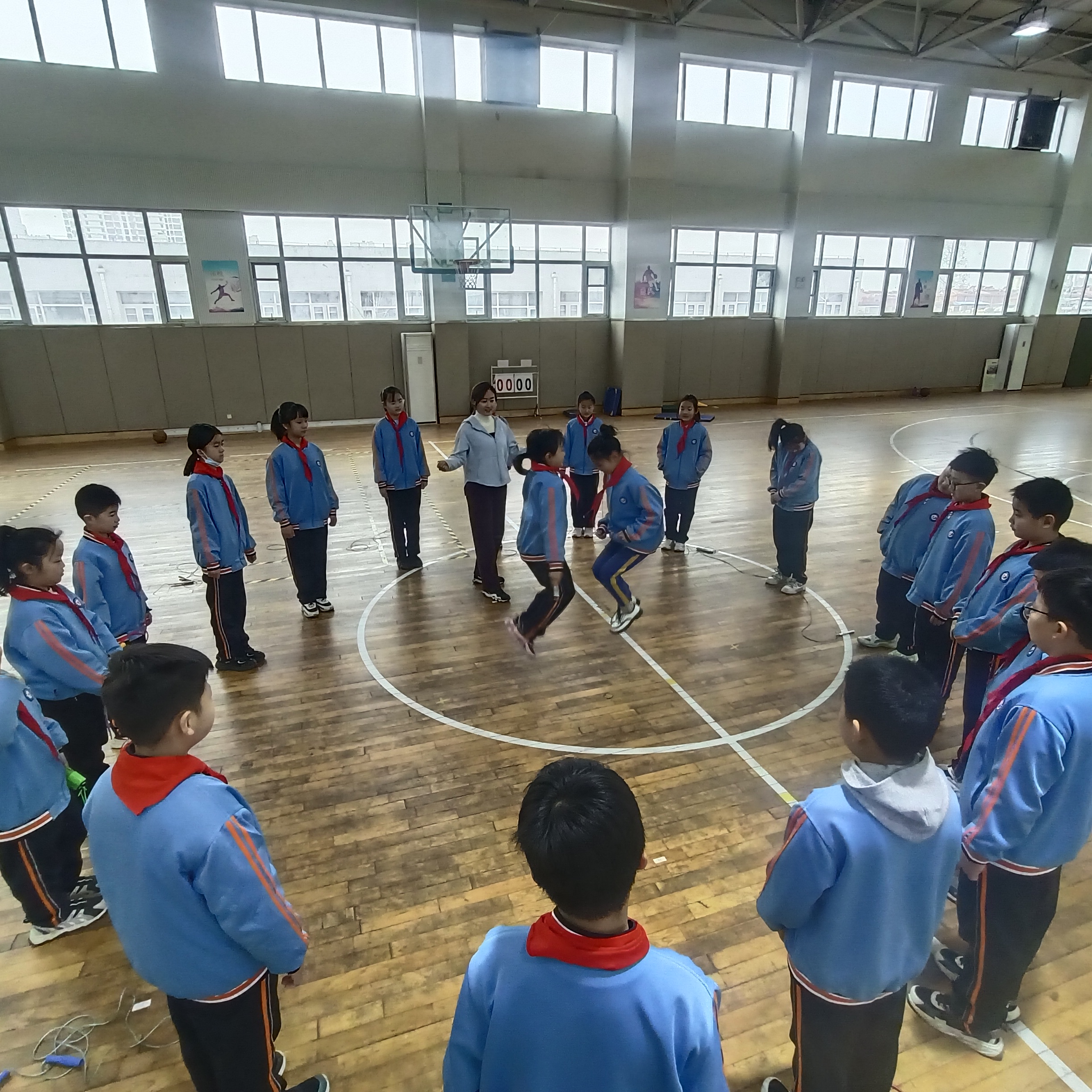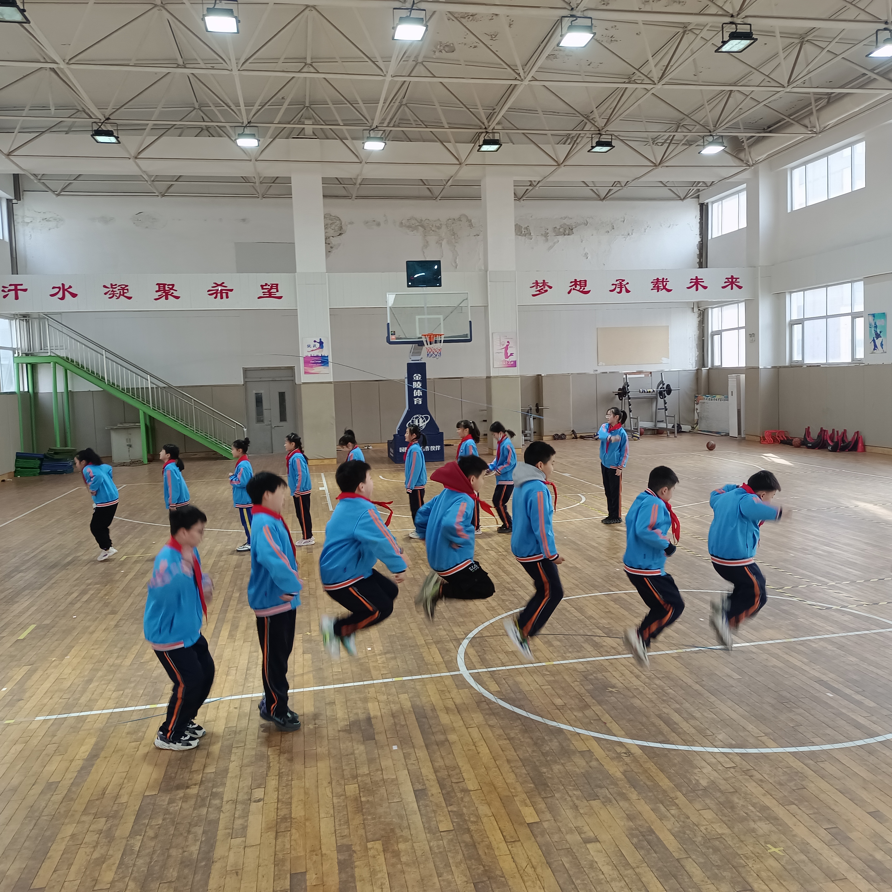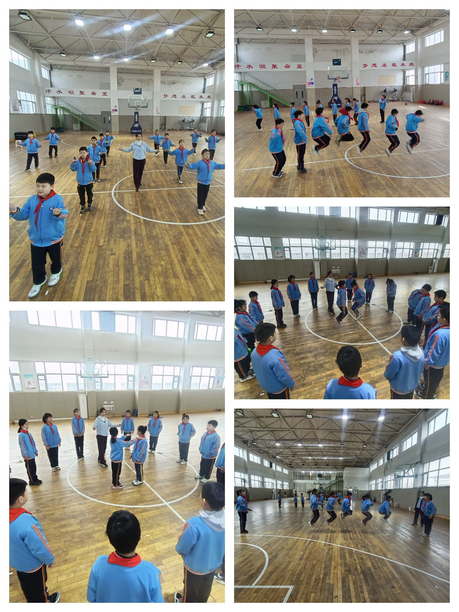 運動項目可以是學生精力充沛,是一種力量,讓同學們體會到“更快、 更高、 更強、更團結”的奧林匹克精神!看,跳繩活動中,同學們學得多認真,玩得多快樂。