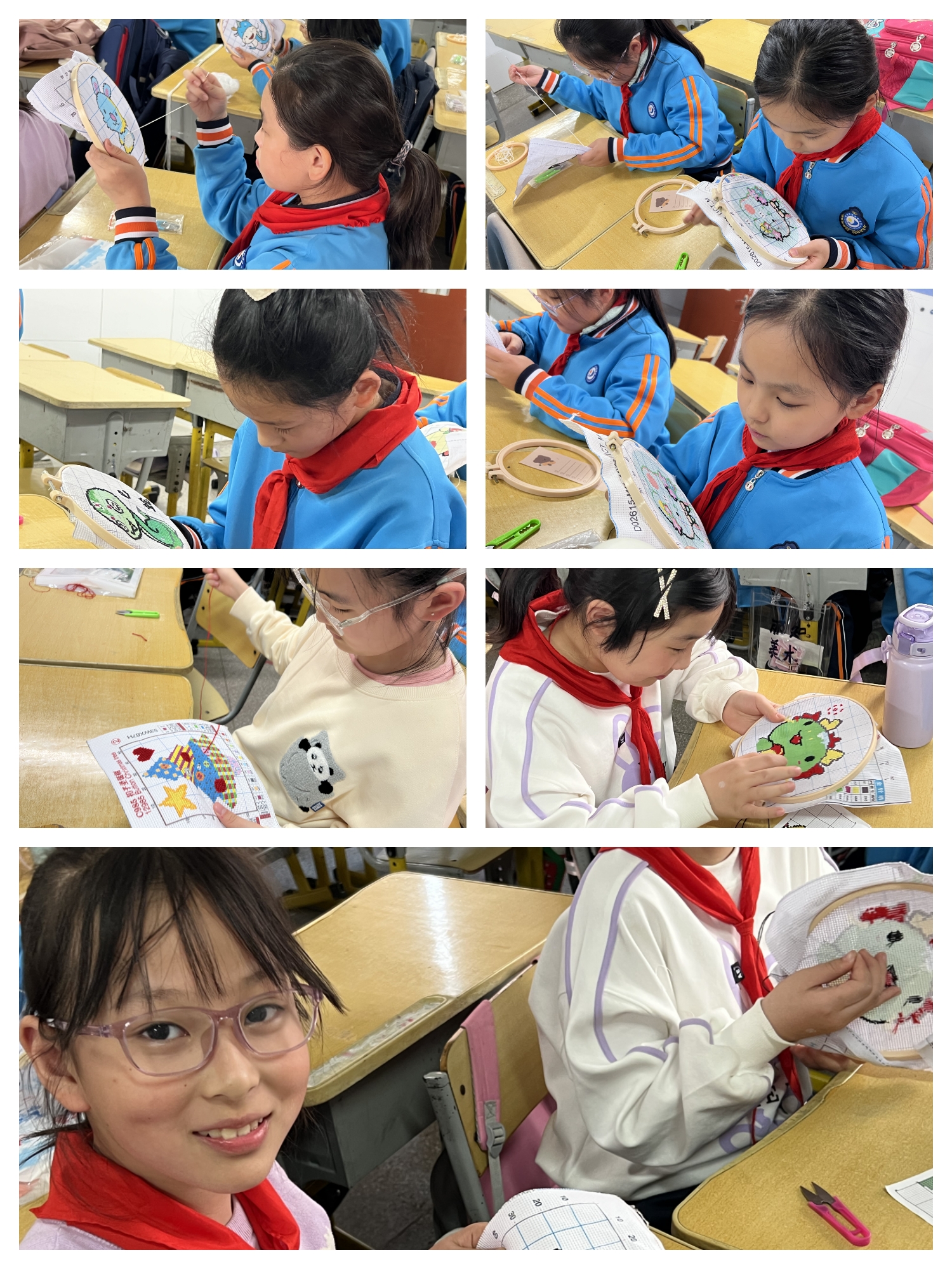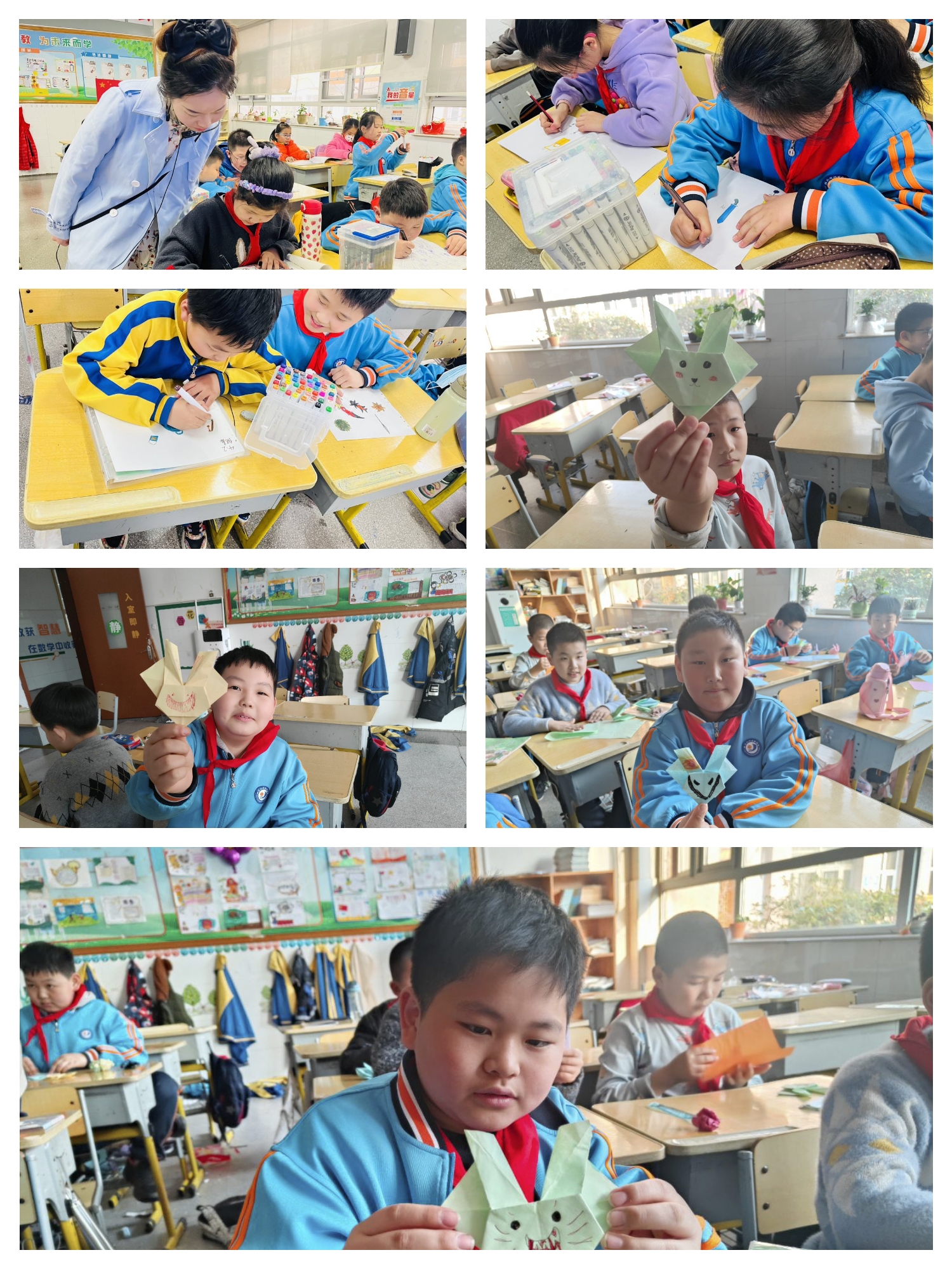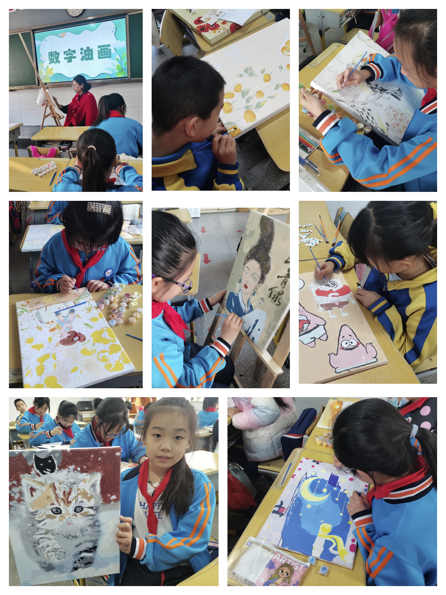 美術類素質課程有油畫、簡筆畫、創(chuàng)意線描、剪紙、折紙以及十字繡,老師們注重培養(yǎng)學生藝術素養(yǎng),引導學生認識事物的細節(jié)特征,鼓勵他們大膽創(chuàng)作,將自己的奇思妙想變成一幅幅獨特而又可視化的作品,從而凸顯學生的個性特長。絢爛的色彩組合,多姿多彩的材料形狀,不斷激發(fā)他們內(nèi)心深處的審美潛能,豐盈他們的情感。讓"美"在學生的心中悄然發(fā)芽、生長……