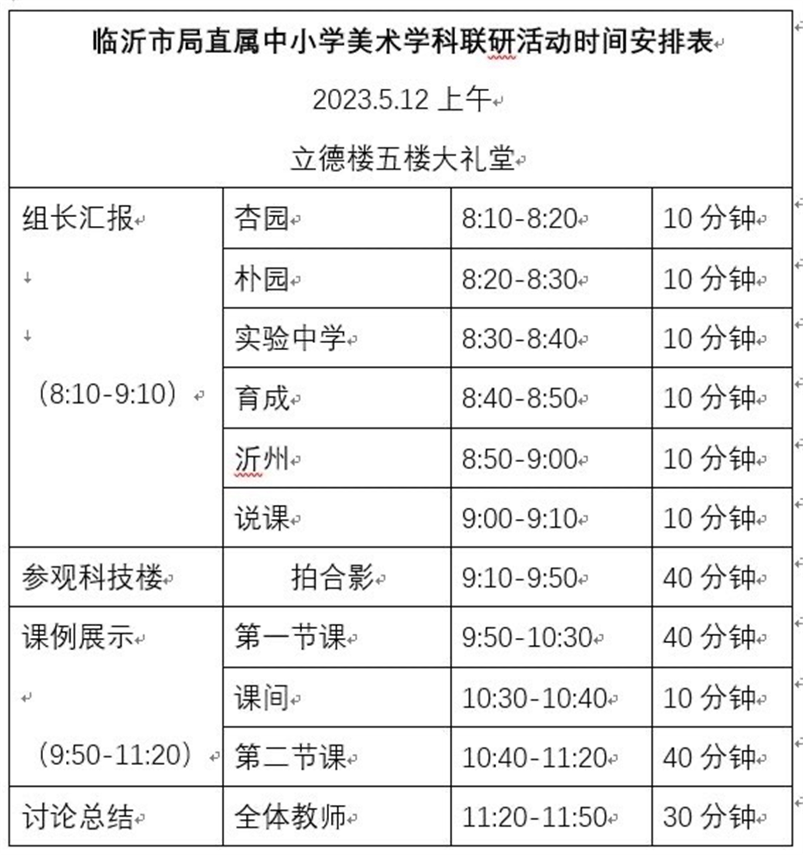夏意淺淺,期待盈盈。為持續(xù)探索基于新課標(biāo)的大單元課堂教學(xué)模式,提高市直學(xué)校美術(shù)教師團(tuán)隊(duì)的教學(xué)教研能力,聚焦藝術(shù)學(xué)科核心素養(yǎng),促進(jìn)教學(xué)評(píng)一體化的課堂整體設(shè)計(jì)的能力提升,2023年5月12日上午,由臨沂市教育科學(xué)研究院主辦的2023年臨沂市教育局直屬學(xué)校中小學(xué)美術(shù)學(xué)科大單元教學(xué)設(shè)計(jì)聯(lián)研活動(dòng)在我校本部舉行。臨沂市教育科學(xué)研究院李娜主任為聯(lián)研活動(dòng)致辭,臨沂沂州實(shí)驗(yàn)學(xué)校黨委委員、副校長(zhǎng)李志強(qiáng)、教務(wù)處蘇媚娟主任、黨建科李倩主任全程陪同參加本次活動(dòng)。市直學(xué)校小初高三個(gè)學(xué)段的70多位美術(shù)教師現(xiàn)場(chǎng)參與學(xué)習(xí)研討。