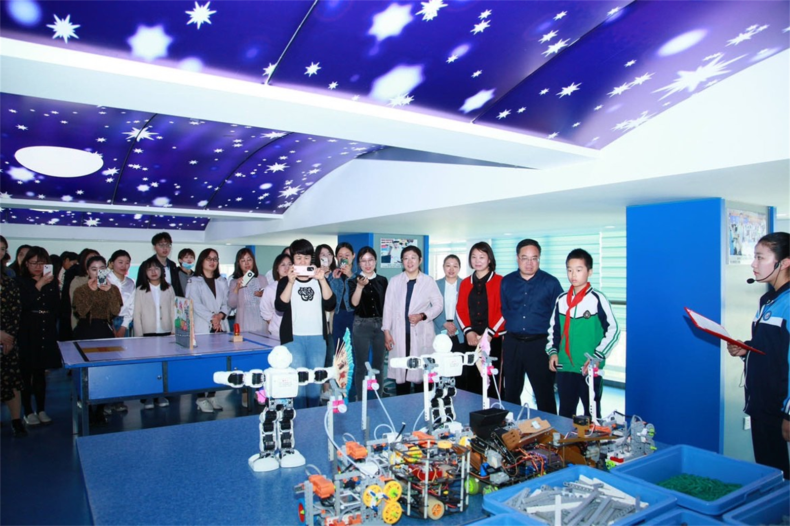為更好的理解市教科院李娜老師關(guān)于“基于本地區(qū)本校特色”的大單元教學(xué)設(shè)計(jì)的理念、體現(xiàn)沂州實(shí)驗(yàn)學(xué)校的科技校園的特點(diǎn),在觀摩《科技創(chuàng)造生活》課例展示之前,老師們參觀了沂州實(shí)驗(yàn)學(xué)校的“銀河之星”少科院。電腦編程、3D打印、發(fā)明創(chuàng)造、航模、機(jī)器人等一個(gè)個(gè)精彩的科技作品展示,讓老師們感受到學(xué)生對(duì)科技創(chuàng)新活動(dòng)的熱愛(ài)。