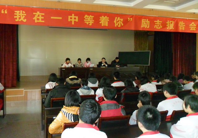 2月17日下午,九年級在五樓禮堂召開“我在一中等著你”勵志報告會。出席會議的有王自祥校長、李守峰副校長、張福生主任、王曉峰副主任和九年級全體師生。大會由李守峰副校長主持。