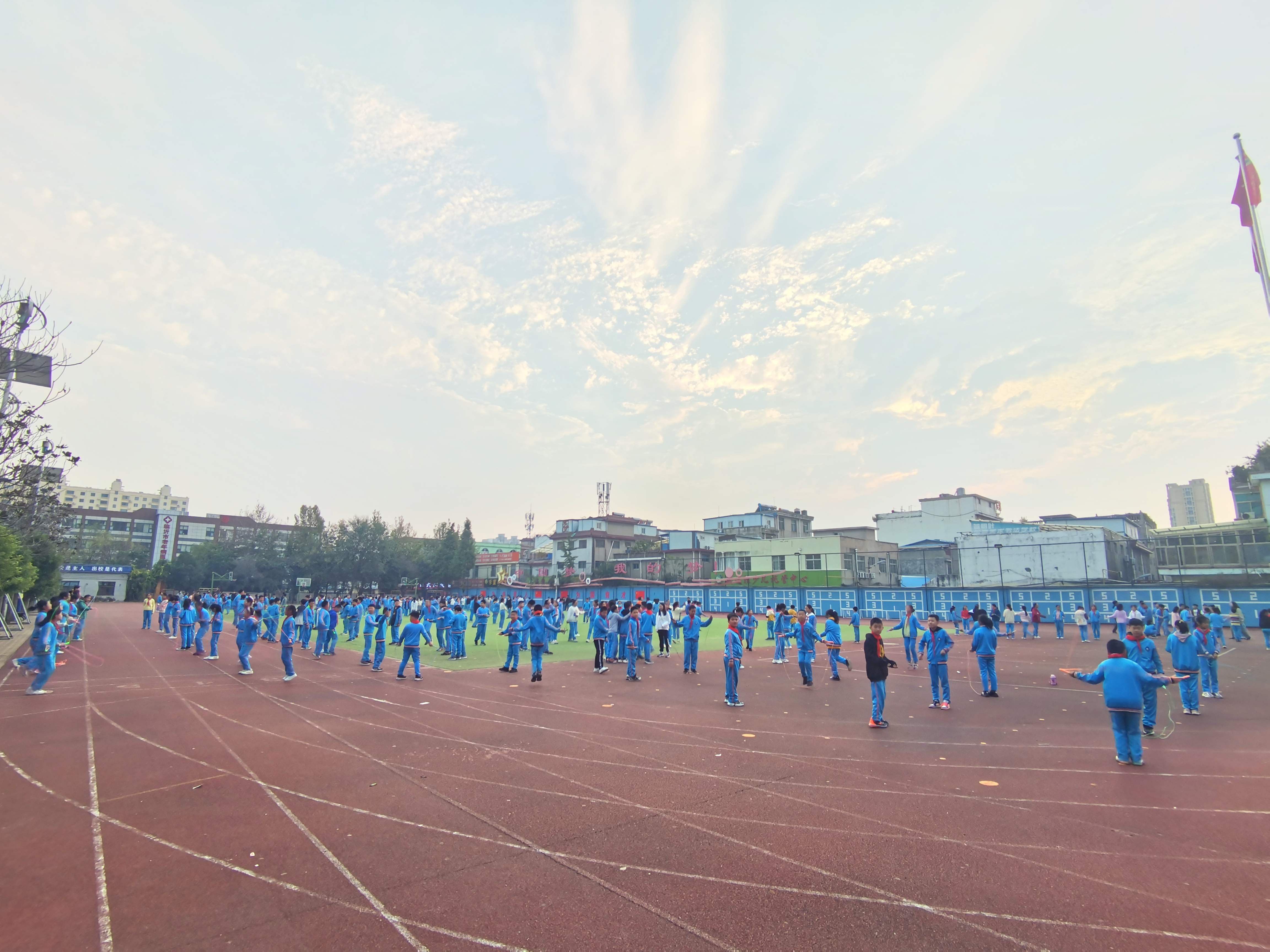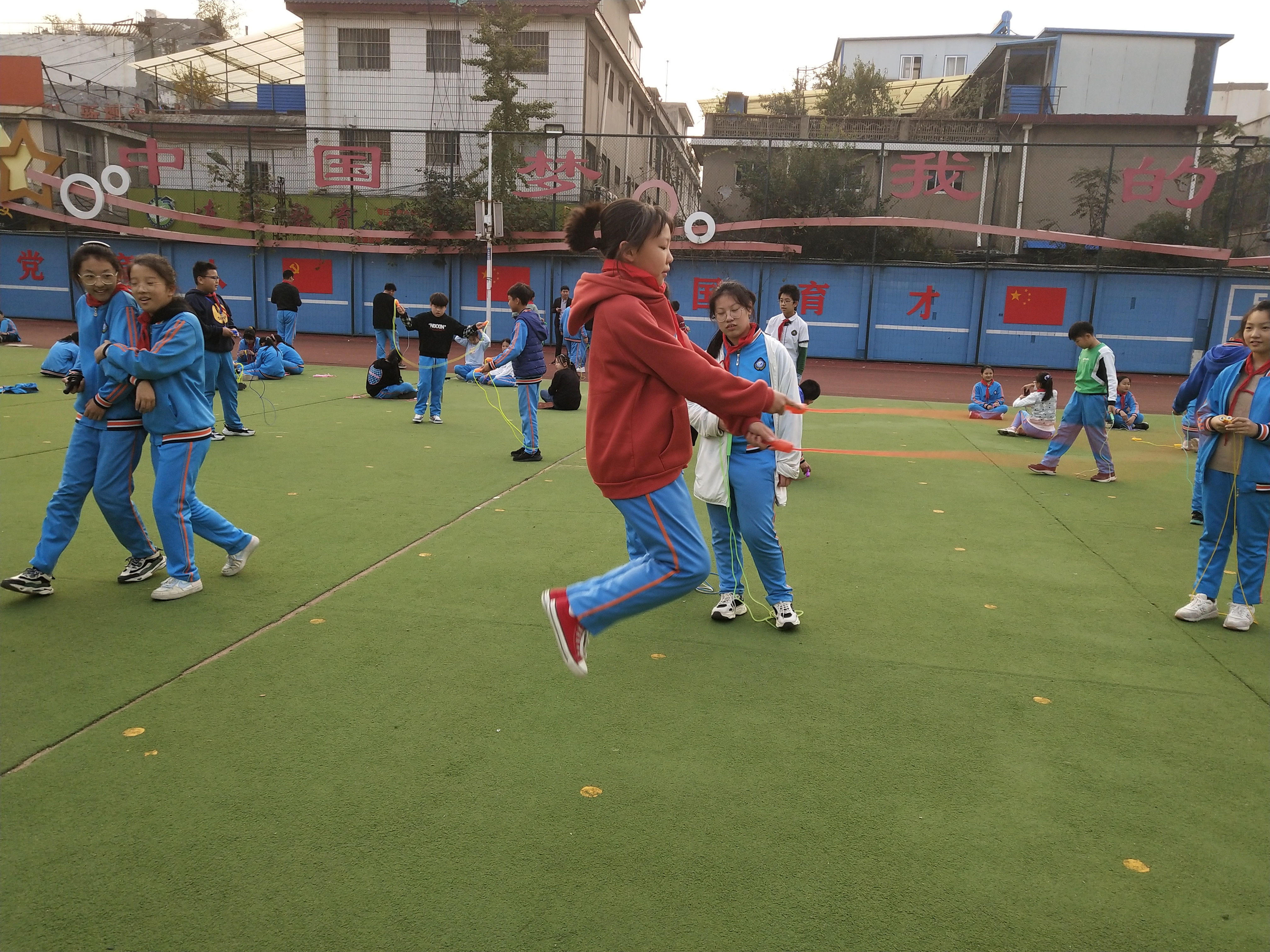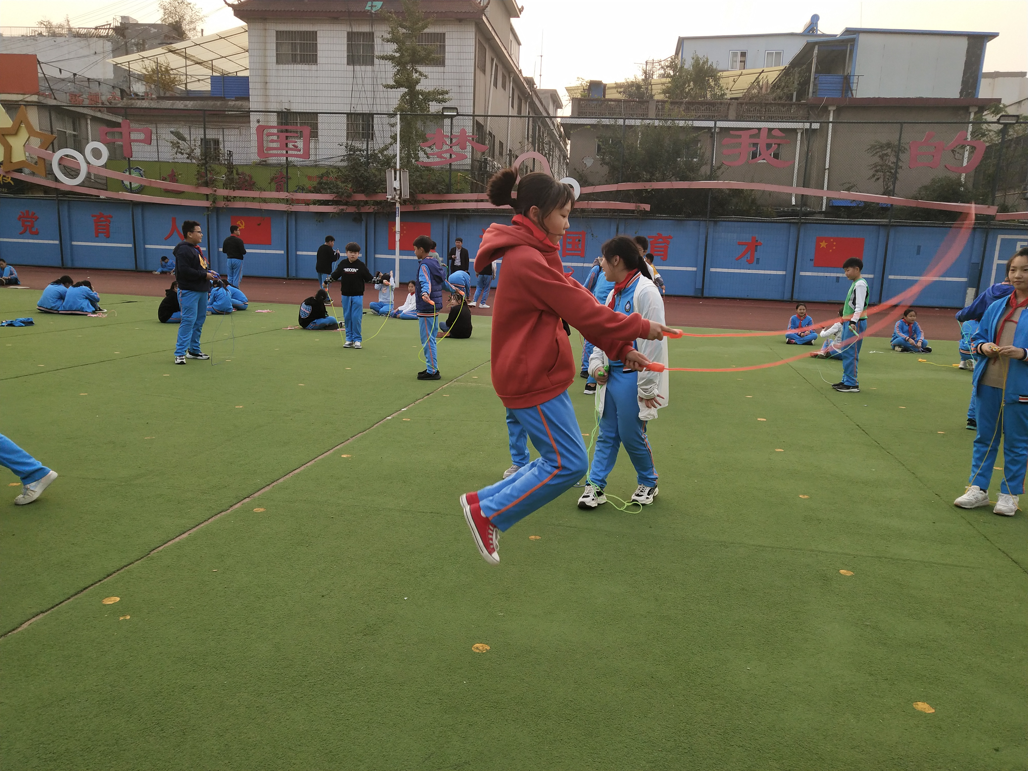 生命在于運動,健康成就未來。為豐富學生體育活動,提高學生身體素質(zhì),幫助學生在運動鍛煉中錘煉意志,享受快樂,10月26日,六年級學生在課后服務(wù)時間舉辦了一場全員跳繩運動,各班班主任全程參與。
