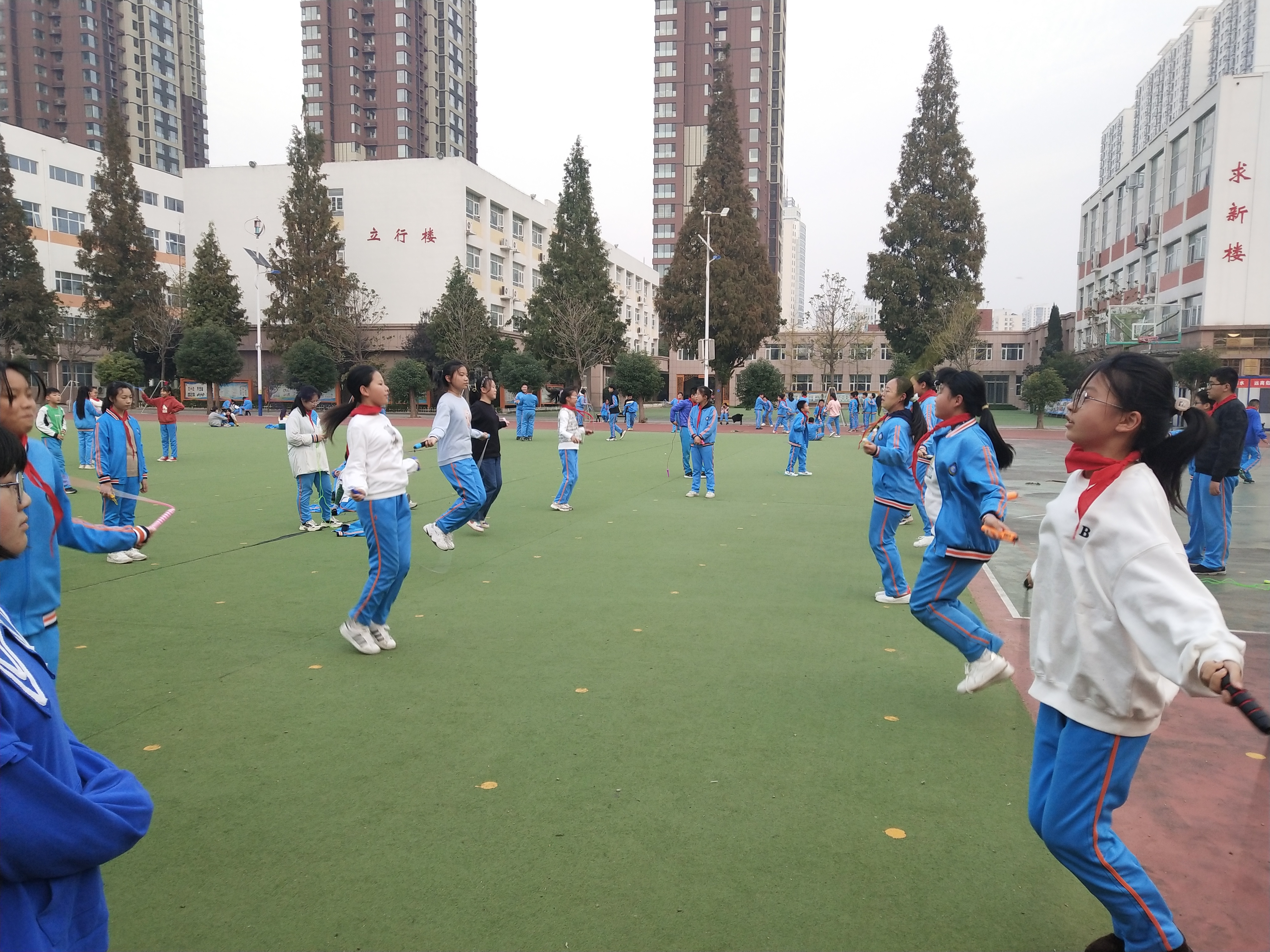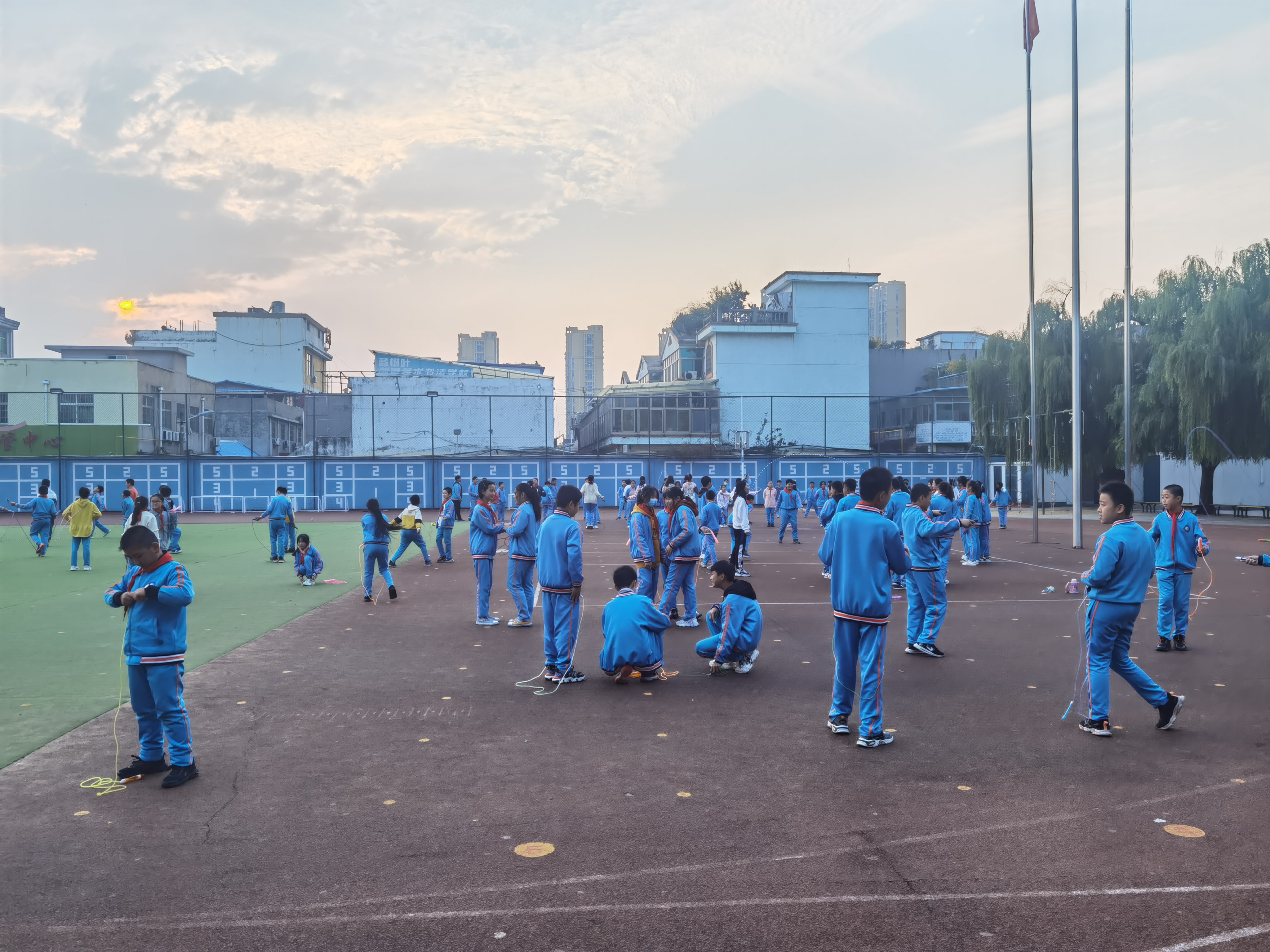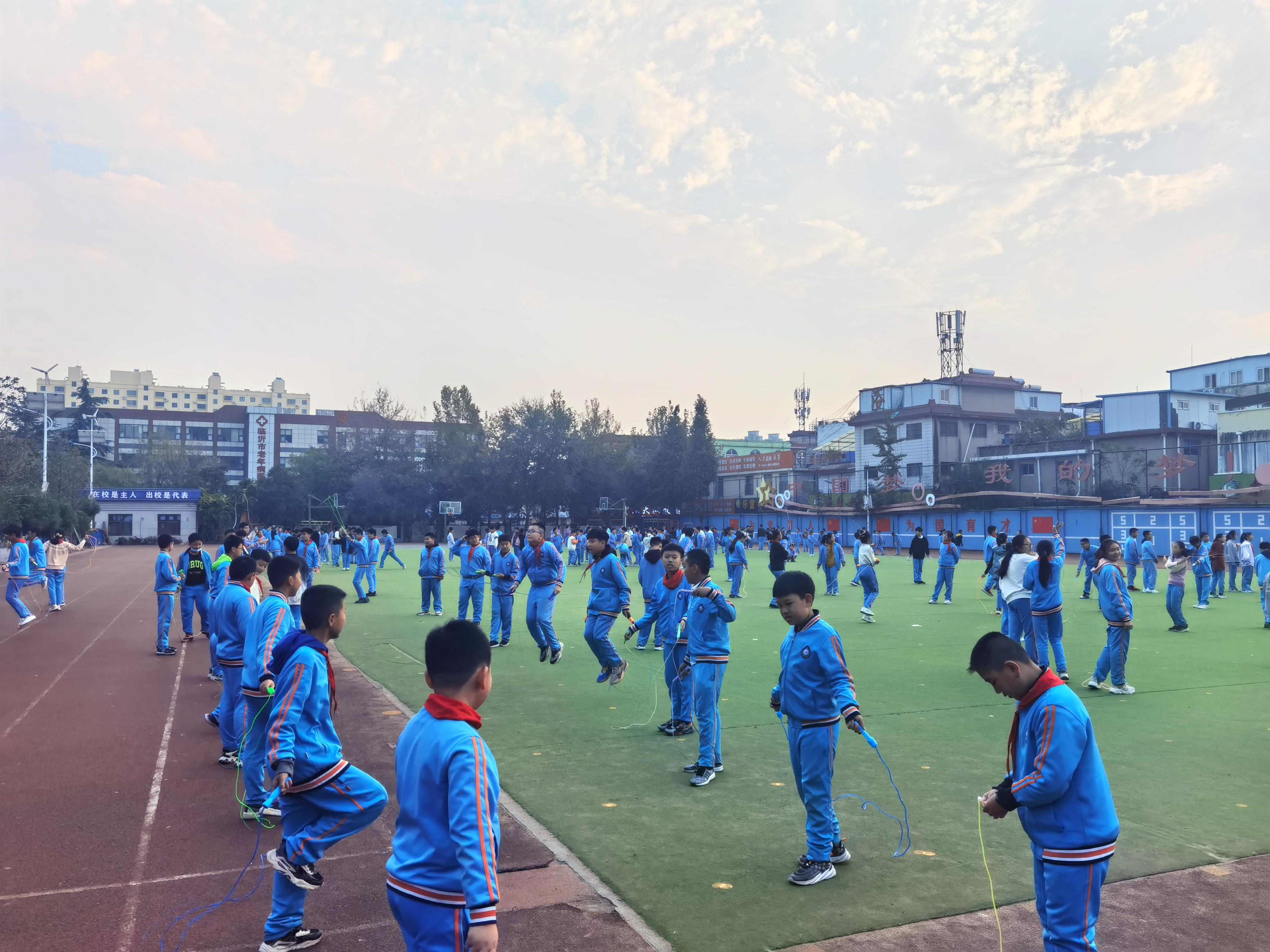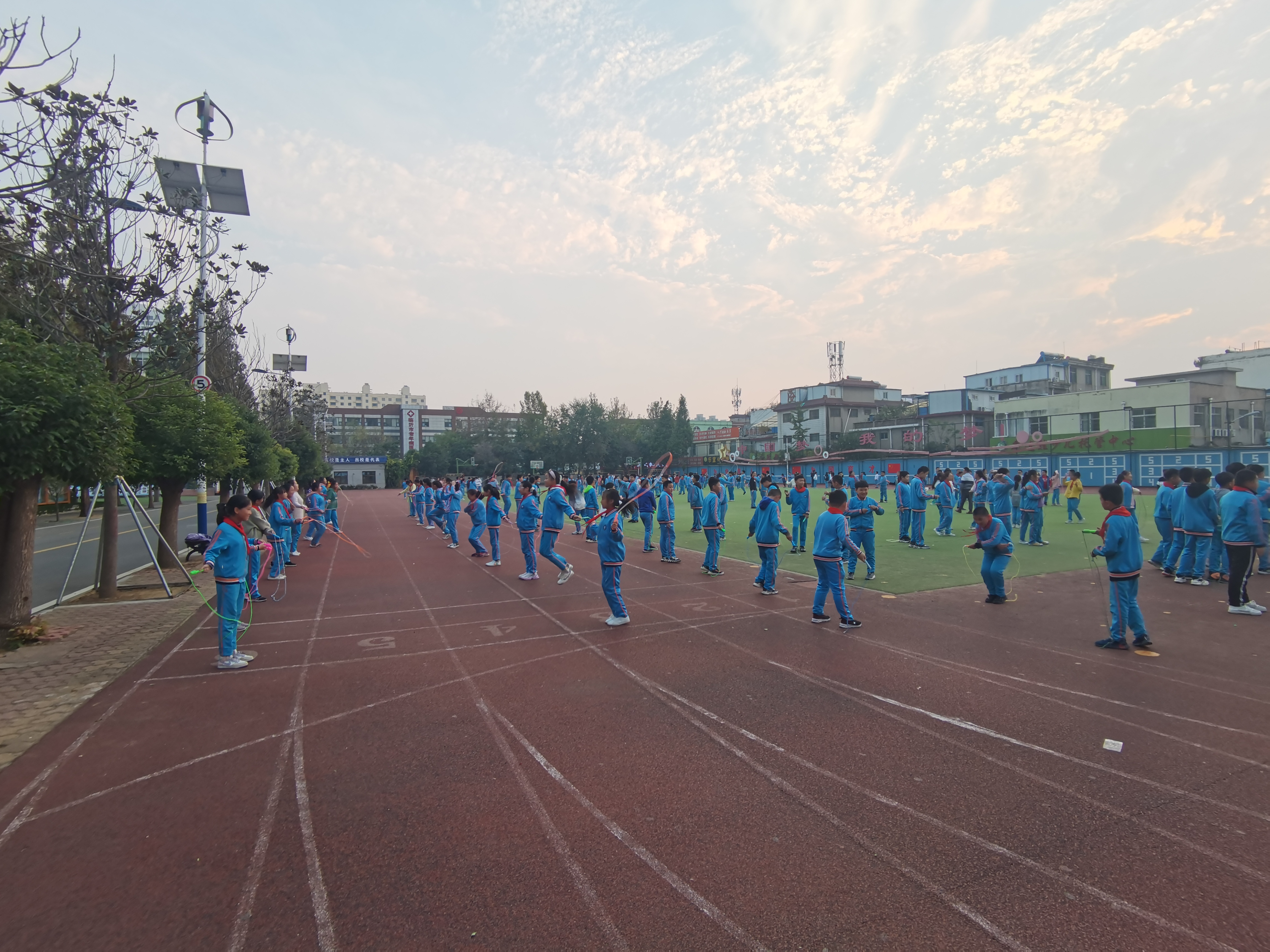 生命在于運動,健康成就未來。為豐富學生體育活動,提高學生身體素質(zhì),幫助學生在運動鍛煉中錘煉意志,享受快樂,10月26日,六年級學生在課后服務(wù)時間舉辦了一場全員跳繩運動,各班班主任全程參與。