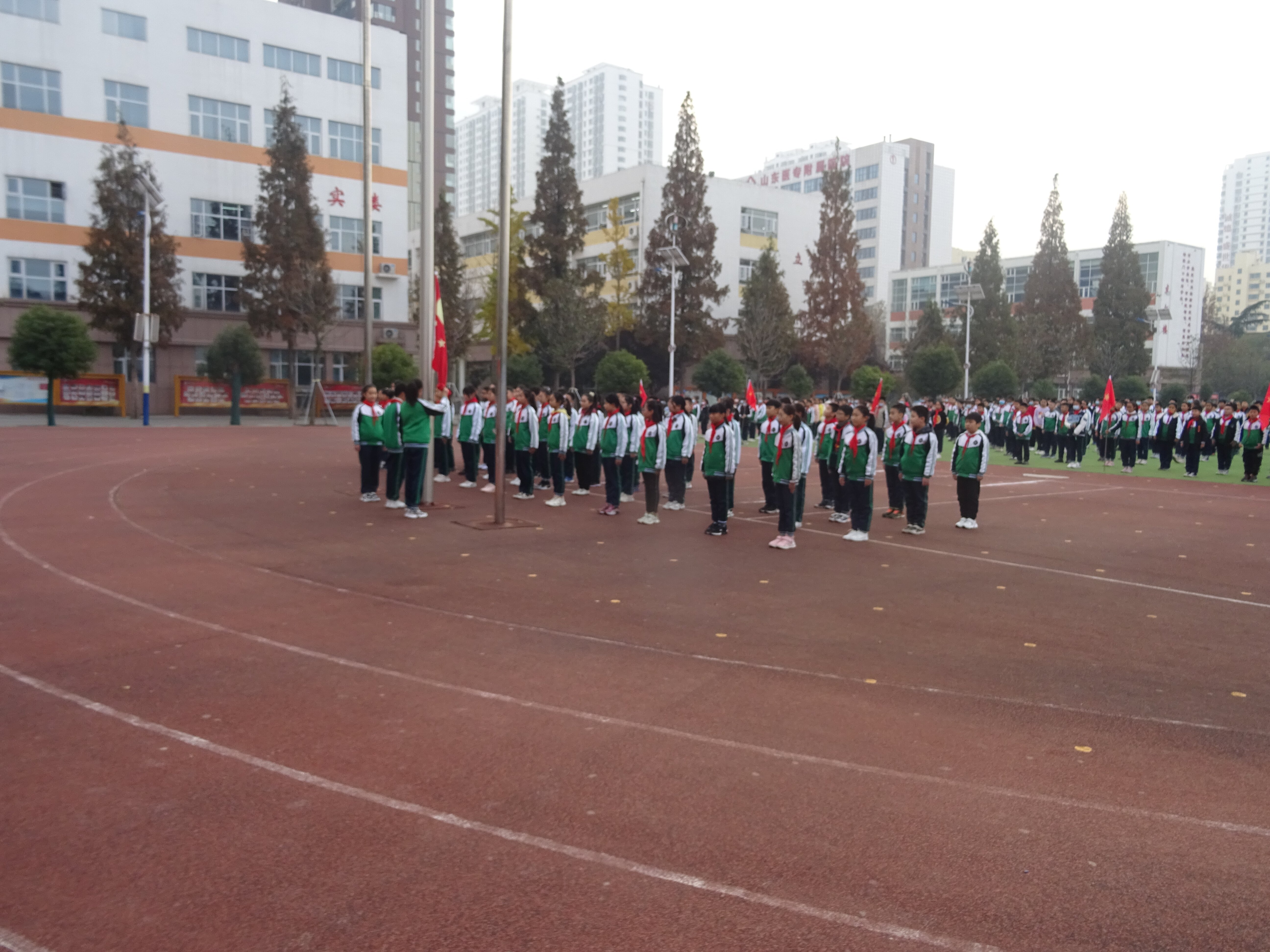 2021年11月15日早上,臨沂沂州實驗學(xué)校舉行了“沂州話消防,安全我領(lǐng)航”主題升旗儀式。由于疫情原因,一至四年級同學(xué)在班級里進行云升旗,五年級同學(xué)到操場舉行升旗儀式。