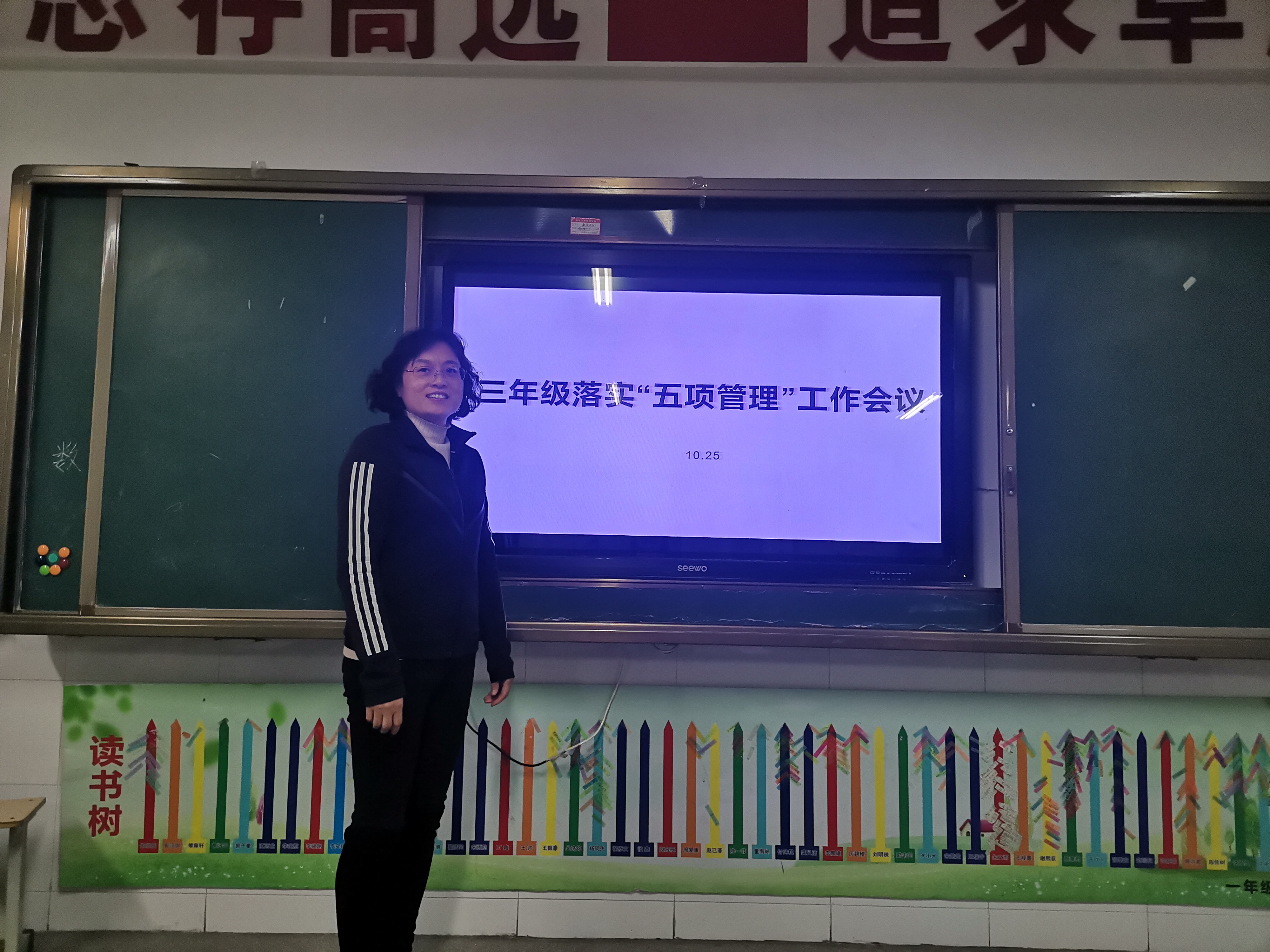 為了更好的貫徹落實“五項管理”政策,切實保障師生的身心健康,提高教育教學(xué)質(zhì)量,10月25日下午,三年級召開了全體教師會。會議由三年級年級主任徐玲主持。