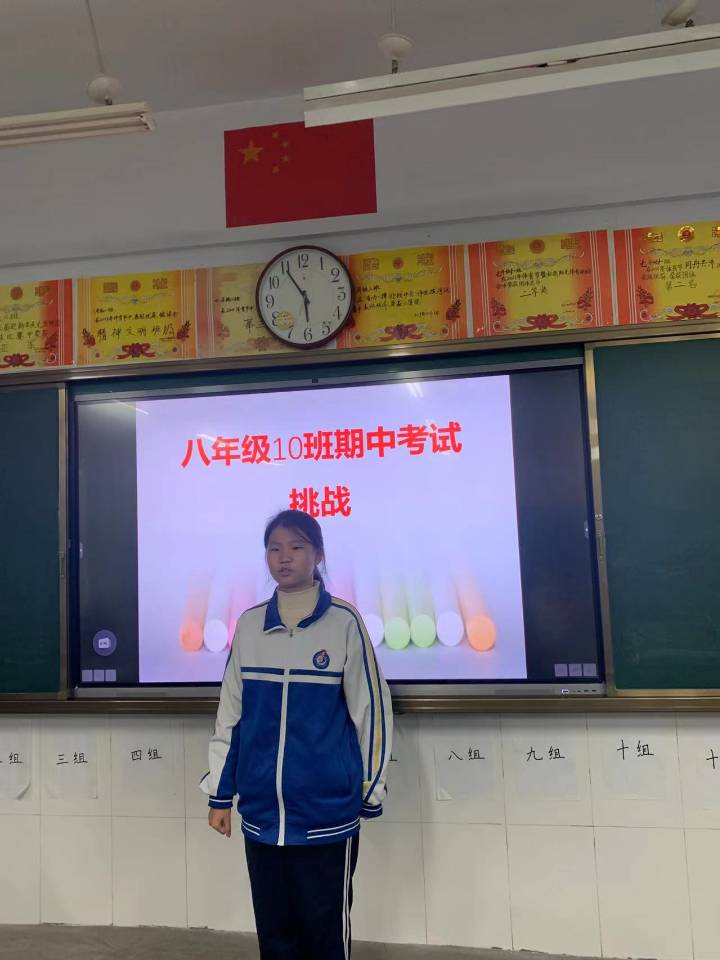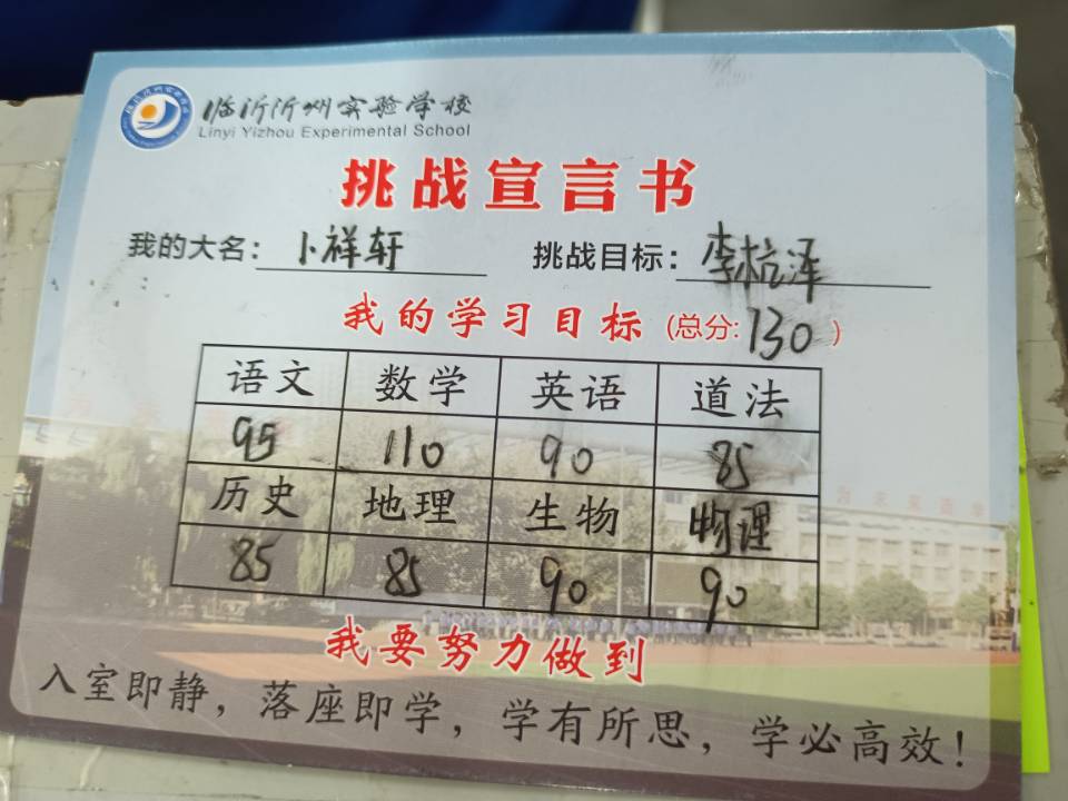 孜孜不倦,寒窗苦讀,需要的不僅是家人的支持、對學習的熱愛,還需要一個目標作為支撐,對于八年級的學生來說,最具體和現(xiàn)實的目標莫過于周圍的同學了。本次挑戰(zhàn)同學們從本班同學中選擇趕超對象,寫下自己的挑戰(zhàn)宣言,并進行勵志演講。