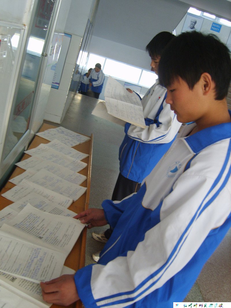 三學(xué)段六七年級是學(xué)生發(fā)展的銜接階段,習(xí)慣養(yǎng)成一直是重中之重。而這次活動(dòng)自然是良好習(xí)慣促成的良好契機(jī)。活動(dòng)一開展就受到了全體學(xué)生的熱烈歡迎,課間,同學(xué)們紛紛駐足瀏覽學(xué)習(xí)。清晰美觀的字跡,一絲不茍的書寫,規(guī)范的答題格式都給同學(xué)們留下了深刻的印象,正所謂“見賢思齊”,他們在對比中看到了自己的不足,無形之中進(jìn)行了一次規(guī)范書寫的教育。與此同時(shí),被展出試卷的同學(xué)更是受到了鼓舞,體會到了成功的喜悅。(三學(xué)段宣傳組 )