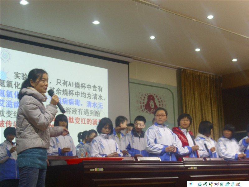 2012年12月3日,三學(xué)段七年級舉行了預(yù)防艾滋的主題活動,希望通過“換水游戲”,讓學(xué)生明白艾滋病的特殊傳播途徑,引導(dǎo)學(xué)生從小要養(yǎng)成良好品行,潔身自愛,遠(yuǎn)離艾滋病,防患于未然。同時這也是為了響應(yīng)今年預(yù)防艾滋病的主題——行動起來,向“零”艾滋邁進(jìn)。