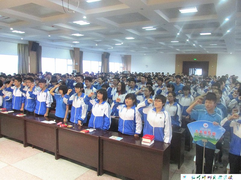 2014年9月26日下午,九年級全體同學(xué)在四號樓五樓禮堂召開了學(xué)生表彰暨奮戰(zhàn)中考大會,出席會議的有王自祥校長、李守峰副校長、王愛永副校長、劉淼主任、王蕾副主任。會議由劉淼主任主持。