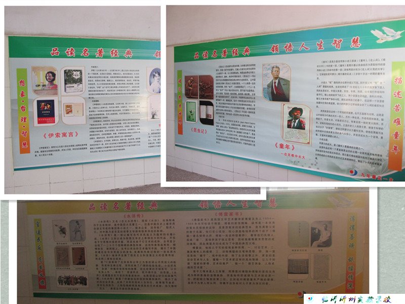 樓道文化建設是校園文化建設的一部分,更是因地制宜地開展素質教育的重要陣地。本學期以來,三學段八九年級精心打造樓道文化,將每層樓道進行了統(tǒng)一規(guī)劃,營造校園人文氛圍,力爭讓每扇墻壁都說話,每個角落都育人。三學段樓道文化從設計到建設處處結合八九年級學生特點,體現著三學段的育人方向,主要以“理想教育”、“靜文化”和“經典文化”為內容,分為三大版塊:第一版塊為名校博覽,主要通過展示中外名校,激發(fā)學生樹立遠大理想;第二版塊是名言警句,主要展示關于“靜”的語錄,引導學生樹立起正確的世界觀、人生觀、價值觀,使他們的青春煥發(fā)健康、蓬勃的活力;第三版塊是經典文化,以“讀經典的書,做有內涵的人”為主題,將古今中外名著展示在墻壁,以圖文結合的形式對學生進行思想上的熏陶。