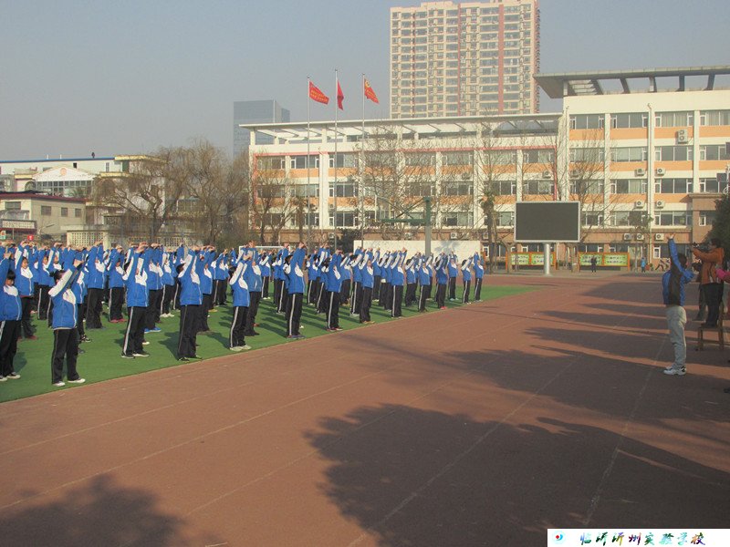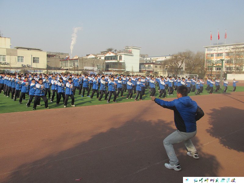 2015年1月8號上午大課間,隨著校園廣播響起的音樂聲,三學(xué)段八年級的學(xué)生安全有序的來到大操場,按照方陣隊形排好隊,做準(zhǔn)備活動,隨后進(jìn)行氣功八段錦的特色展示。