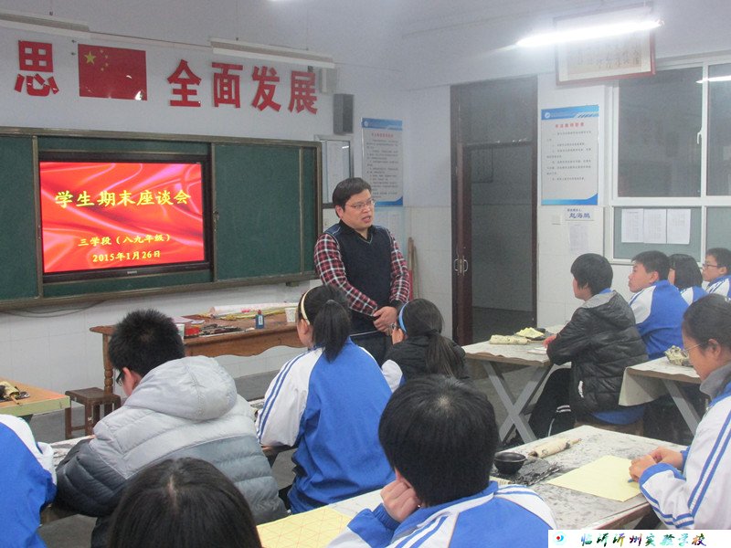 2015年1月26日,三學(xué)段八九年級組織召開了各班班長、團支部書記參加的期末學(xué)生座談會,目的是抓班風(fēng)、濃學(xué)風(fēng)、促校風(fēng)。