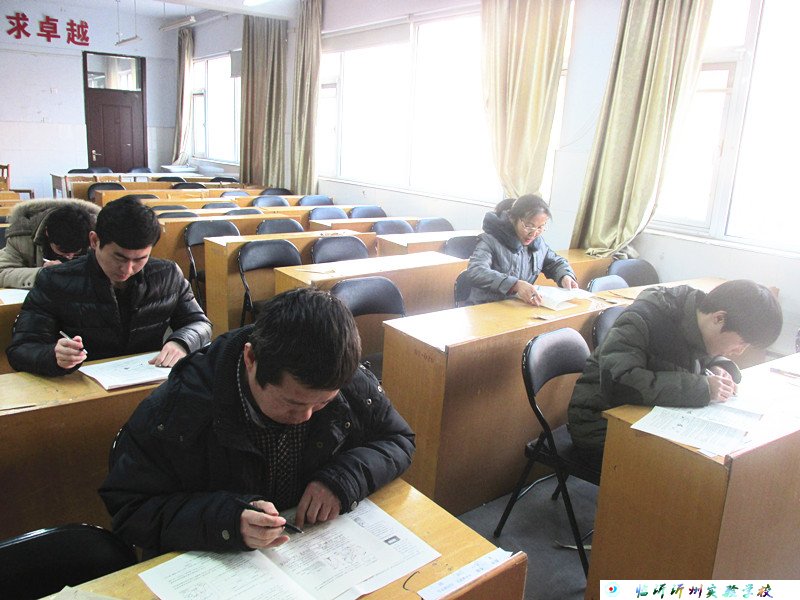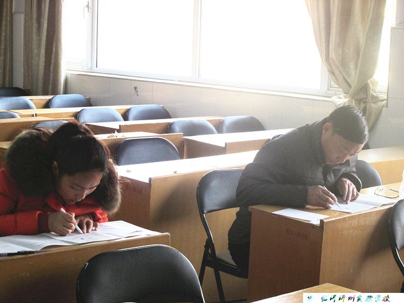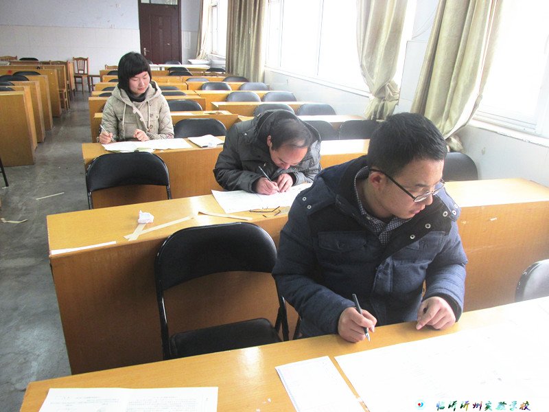 2015年2月2日至3日是本學(xué)期期末考試時(shí)間,參加考試的除了八九年級的學(xué)生外,還多了一群特殊的考生。他們就是三學(xué)段八九年級的各科任教老師。李守峰副校長也攜八九年級數(shù)學(xué)組全體老師參加了數(shù)學(xué)科的考試。在教師隨考考場,答卷的老師們單獨(dú)坐一桌,他們答卷時(shí)一絲不茍,嚴(yán)肅認(rèn)真,在規(guī)定的時(shí)間內(nèi)與學(xué)生一起答題。