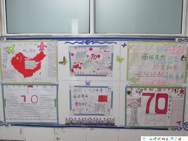 今年是中國人民抗日戰(zhàn)爭暨世界反法西斯戰(zhàn)爭勝利70周年。為進(jìn)一步推進(jìn)愛國主義教育,緬懷抗日先烈,引導(dǎo)廣大師生牢記歷史、珍愛和平、開創(chuàng)未來,珍惜來之不易的幸福生活,三學(xué)段六九年級以建設(shè)班級文化為契機(jī),開展了一系列紀(jì)念抗戰(zhàn)勝利70周年主題活動。