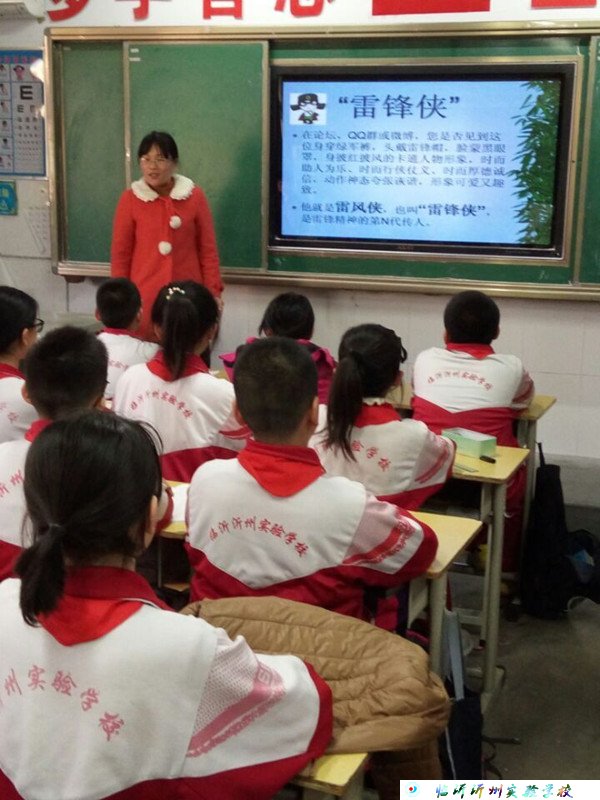3月21日下午,三學段各班級開展了關于“學習雷鋒精神,構建和諧社會”的主題班會。各班就雷鋒的成長歷程、生平事跡、雷鋒日記、雷鋒精神內(nèi)涵等進行了簡單了解,并在班內(nèi)展開了關于“‘釘子’精神”、“助人為樂”、“勤儉節(jié)約”等雷鋒精神的討論,最后號召大家尋找自己身邊的雷鋒,讓沂州實驗學校因我們而美麗。