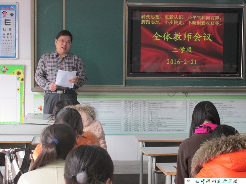 2016年2月21日上午,三學(xué)段召開新學(xué)期第一次全體教師會議。劉淼主任、王蕾副主任及三學(xué)段六九年級全體教師參加了會議。