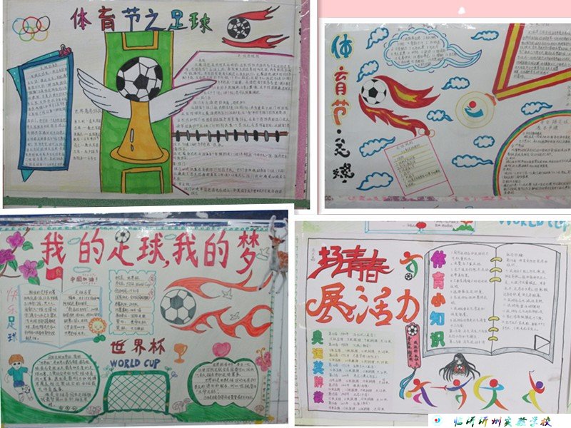 本次手抄報宣傳展示活動主要由六年級學生參加,以“我愛足球運動”為主題,內(nèi)容豐富,圖文并茂,淺顯易懂。在各班級層層選拔的基礎上,學段將各班的優(yōu)秀學生作品進行了展出,并組織全體師生進行參觀。一幅幅精美的手抄報通過生動活潑的圖片及工整規(guī)范的文字展示了學生對足球知識的了解,提高了我校學生對足球的熱情,促進了同學之間以及足球愛好者的團結(jié)、友愛、交流。