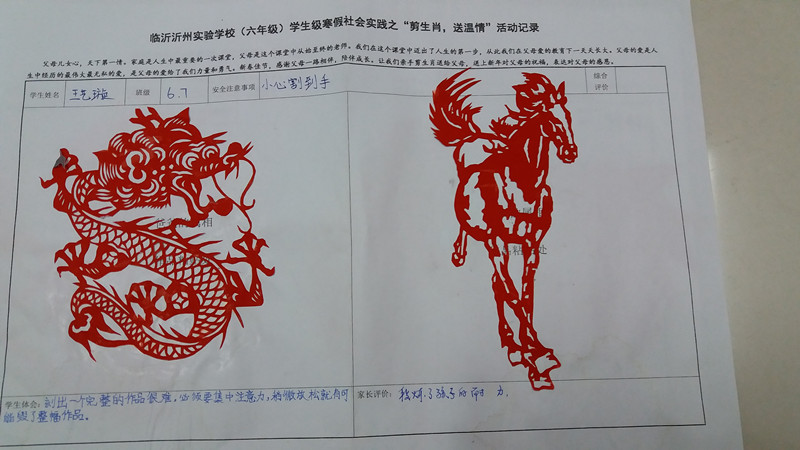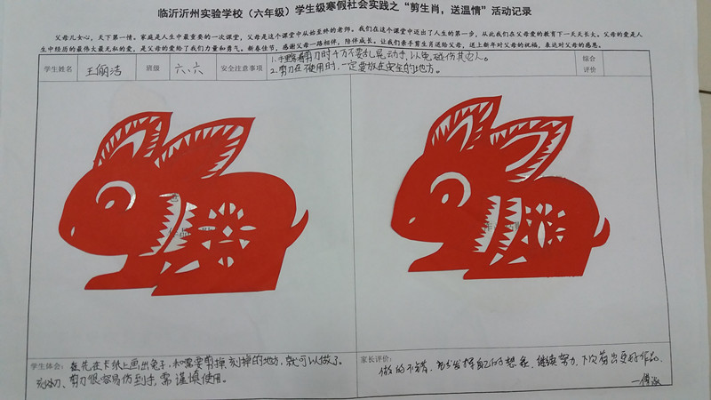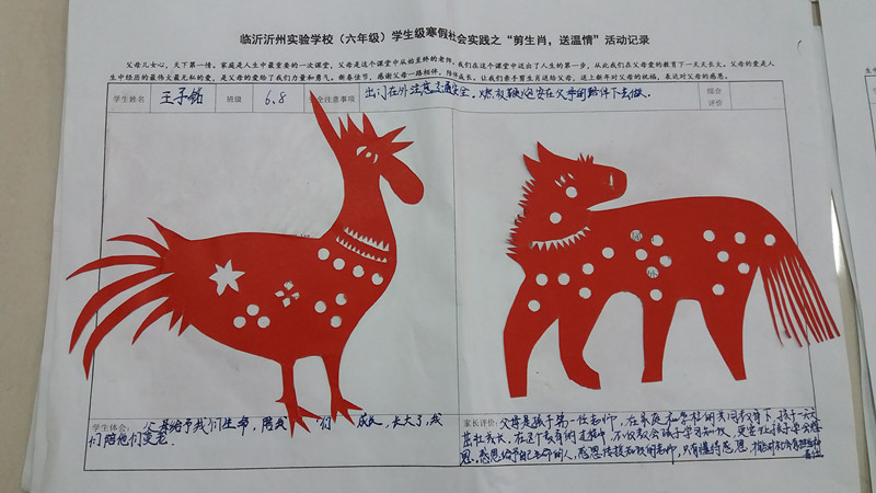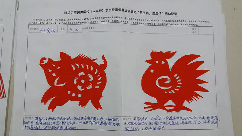 寒假期間,三學(xué)段給六七年級學(xué)生布置了特色寒假社會實踐作業(yè)——六年級“剪生肖、送溫馨”和七年級“四菜一湯”。