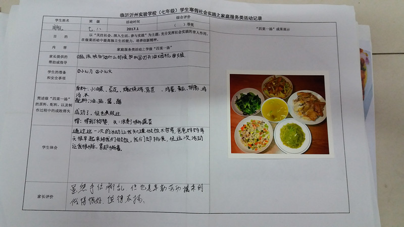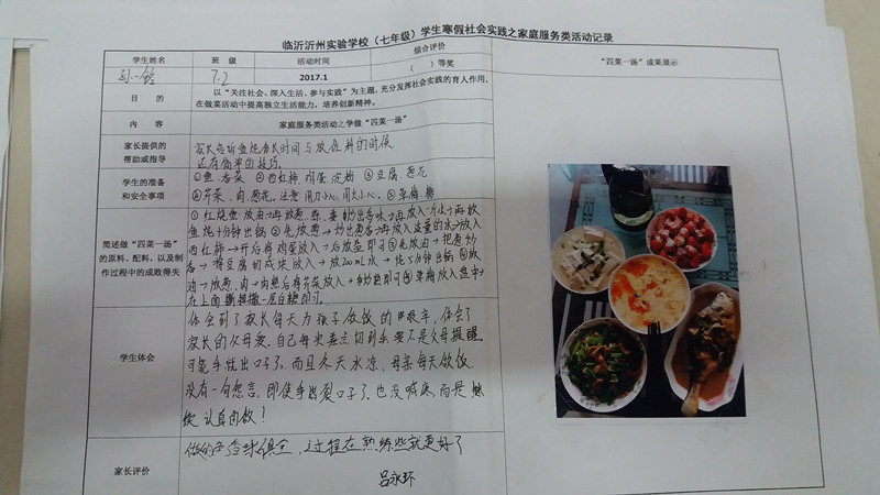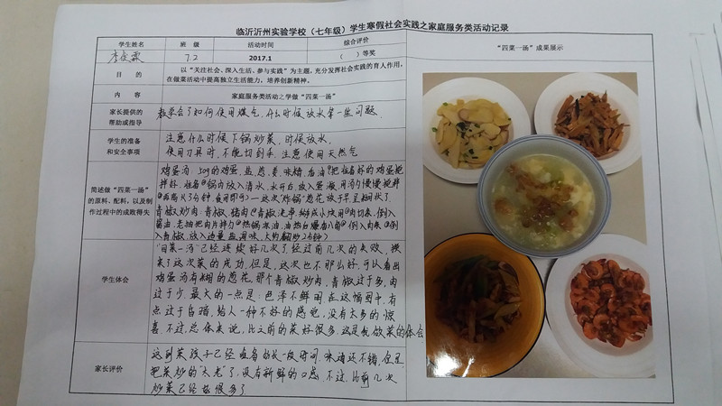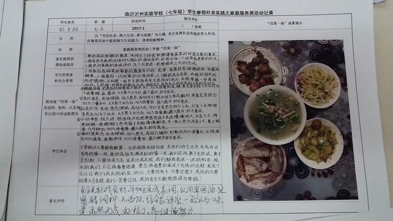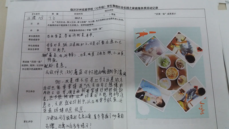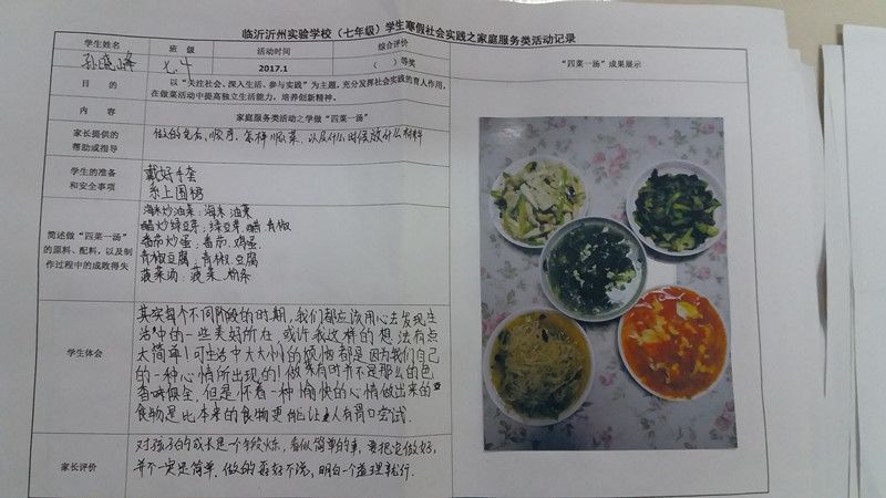 該社會實踐作業(yè)把社會廣泛提倡的“尊敬父母、自立自強(qiáng)”的家庭美德與學(xué)生的寒假生活有機(jī)結(jié)合起來,讓孩子親自用雙手給家庭帶來濃濃的親情和深深的愛意,啟發(fā)了孩子們的家庭觀念和成人意識,渲染了節(jié)日氣氛,很受家長們的歡迎,收到了較好的教育效果和社會效益。