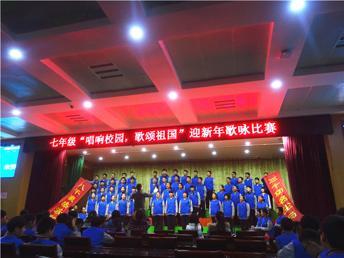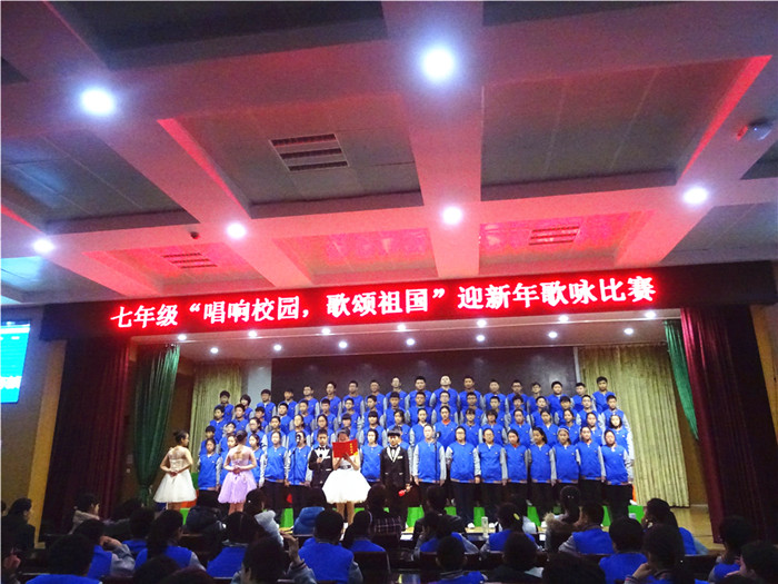 “唱響校園,歌頌祖國(guó)”。12月23日,三學(xué)段七年級(jí)迎新年歌詠比賽在五樓禮堂隆重舉行。七年級(jí)所有師生歡聚一堂,歌聲嘹亮,激情唱響,展示自己的青春和理想。
