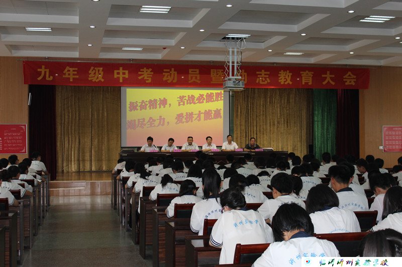 之后是王自祥校長代表學校給學生指明了人生之路,望學生努力進取,擁有更大人生舞臺。因此校長認為有兩種因素最重要:精神因素和技術(shù)因素,而且精神因素具有決定性的作用,會影響教師指導中考和學生應(yīng)對中考的能力。基于這點校長對初三畢業(yè)班學生提出了四點希望。一是樹立目標。期望大家明確自己的升學目標,并使之成為隱形的翅膀,助大家飛翔。二是全神貫注。要求大家要用只有最后的一天的時間來對待剩下的每一天,每一節(jié)課。一定做到面對中考,無怨無悔!三是考驗自我。自己在困難面前永不退縮。四是體驗成功。勉勵大家面對學校創(chuàng)造的輝煌,在剩下的時間里,在老師的辛勤輔導下,鳳凰涅槃完成一次蛻變,用自己的汗水和智慧創(chuàng)造一個奇跡。
