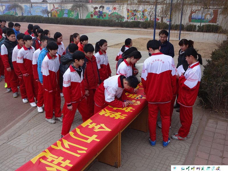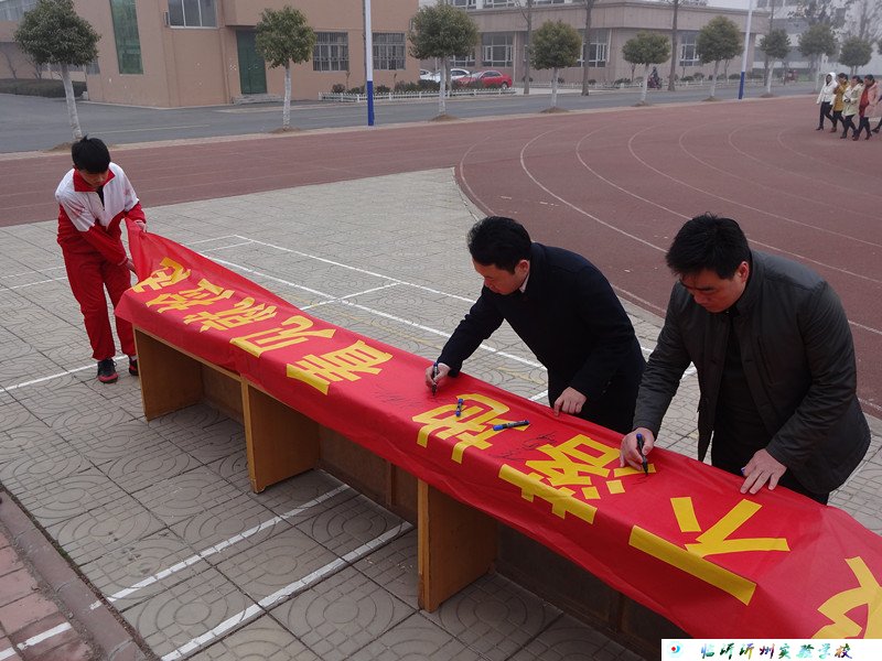 升旗儀式上,王自祥校長率先帶領(lǐng)校領(lǐng)導(dǎo)在“垃圾不落地,看見就撿起”及九年級的勵志條幅上簽了名字,在學(xué)習(xí)上為全校同學(xué)加油鼓勁,在行為習(xí)慣上為全校師生起了帶頭示范作用。通過此次升旗儀式,學(xué)生們明確了學(xué)習(xí)目標(biāo),個個斗志昂揚(yáng)、信心百倍地迎接新學(xué)期的挑戰(zhàn);同時,深深意識到了維護(hù)校園清潔是每一個人的責(zé)任,文明首先從撿起一片垃圾開始,校園的美麗需要我們大家共同的努力! (四學(xué)段 張金秀)