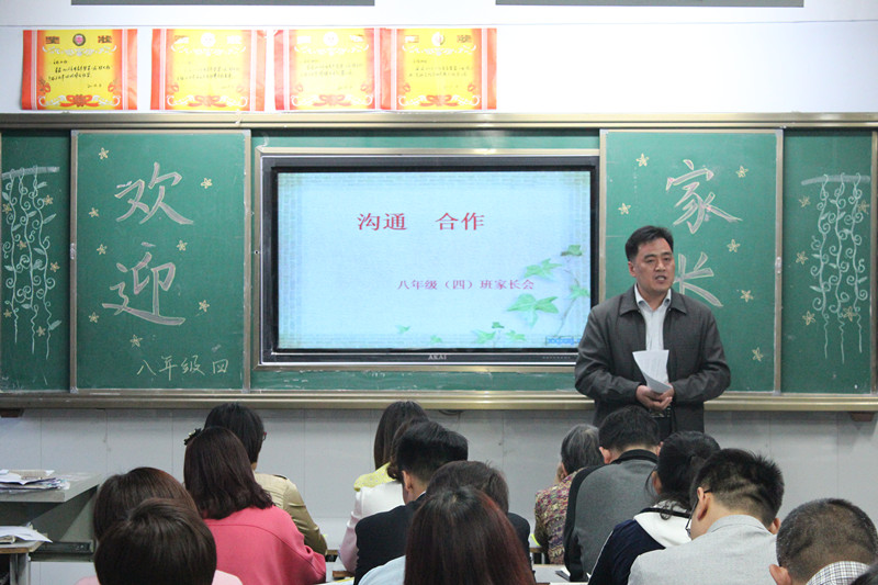 首先,七年級和八年級的各班主任全面調(diào)動學(xué)生的積極性,讓部分學(xué)生參與到家長會會場地布置,學(xué)生們針對家長會對教室做了精心布置:教室干凈整潔,黑板上或?qū)懼鴼g迎家長的標(biāo)語,或畫著溫馨的圖畫,使各位家長一走進教室就能感受到一種溫馨、和諧的氛圍。其次,家長會上,各班班主任、任課老師準(zhǔn)備了詳實的材料,就本學(xué)期開學(xué)以來的學(xué)校工作、班級活動及學(xué)生在校表現(xiàn),向與會家長一一匯報,并分析了本次期中考試的成績、學(xué)生在學(xué)習(xí)中存在的一些問題,給予了家長一些具體的有針對性的建議。同時,也就家長應(yīng)如何更好的配合學(xué)校做好孩子們的教育工作交流了看法。